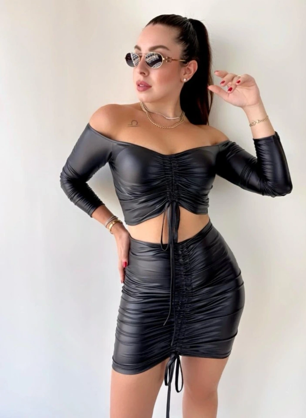 Kadın Büzgülü Deri Etek Takım Fırsat Ürün