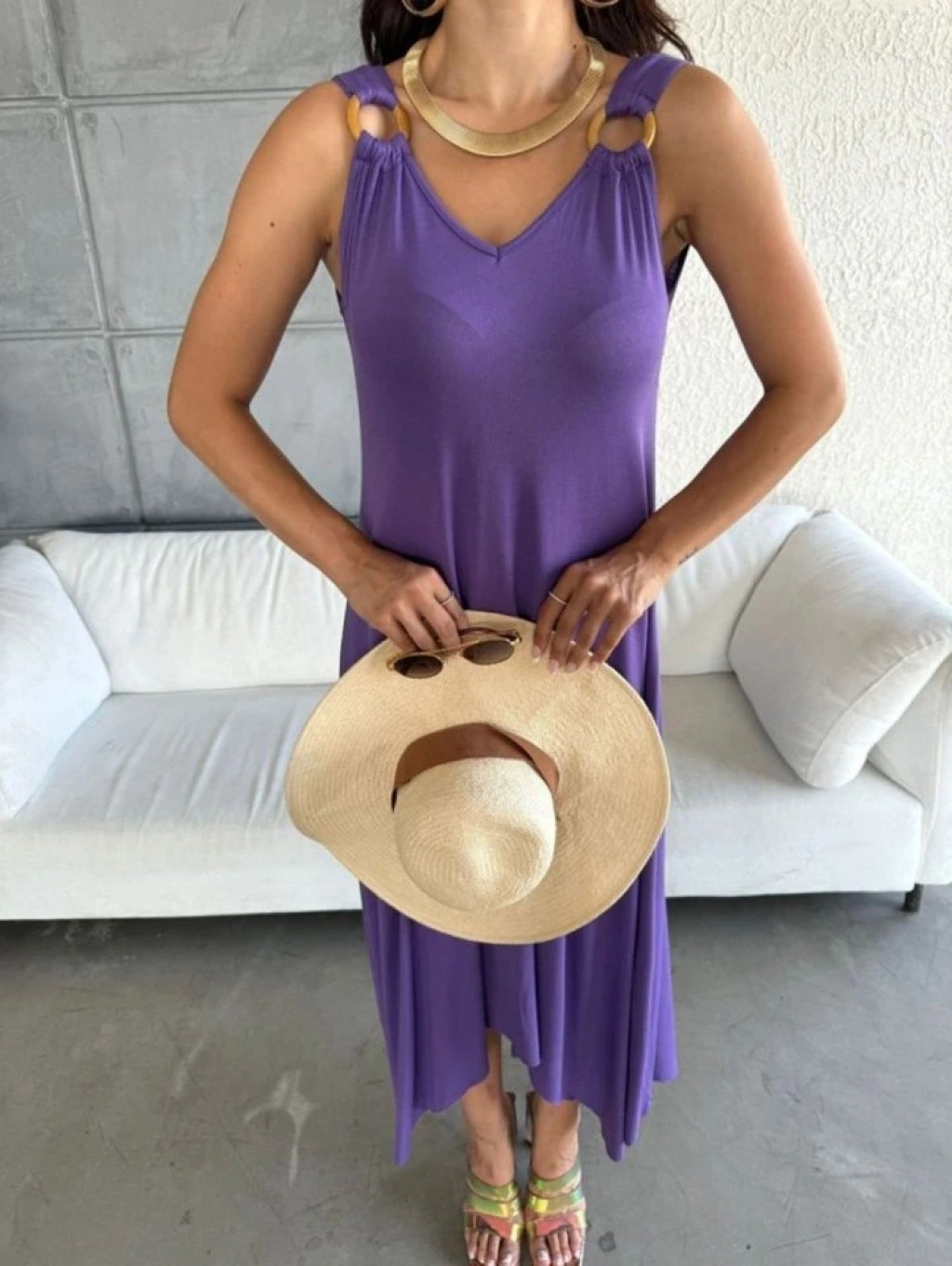 Kadın çan Dokuma Kumaş V Yaka Asimetrik Kesim Elbise