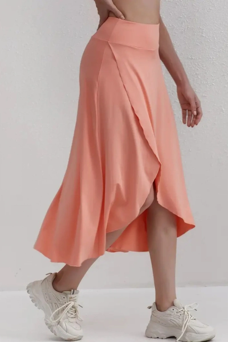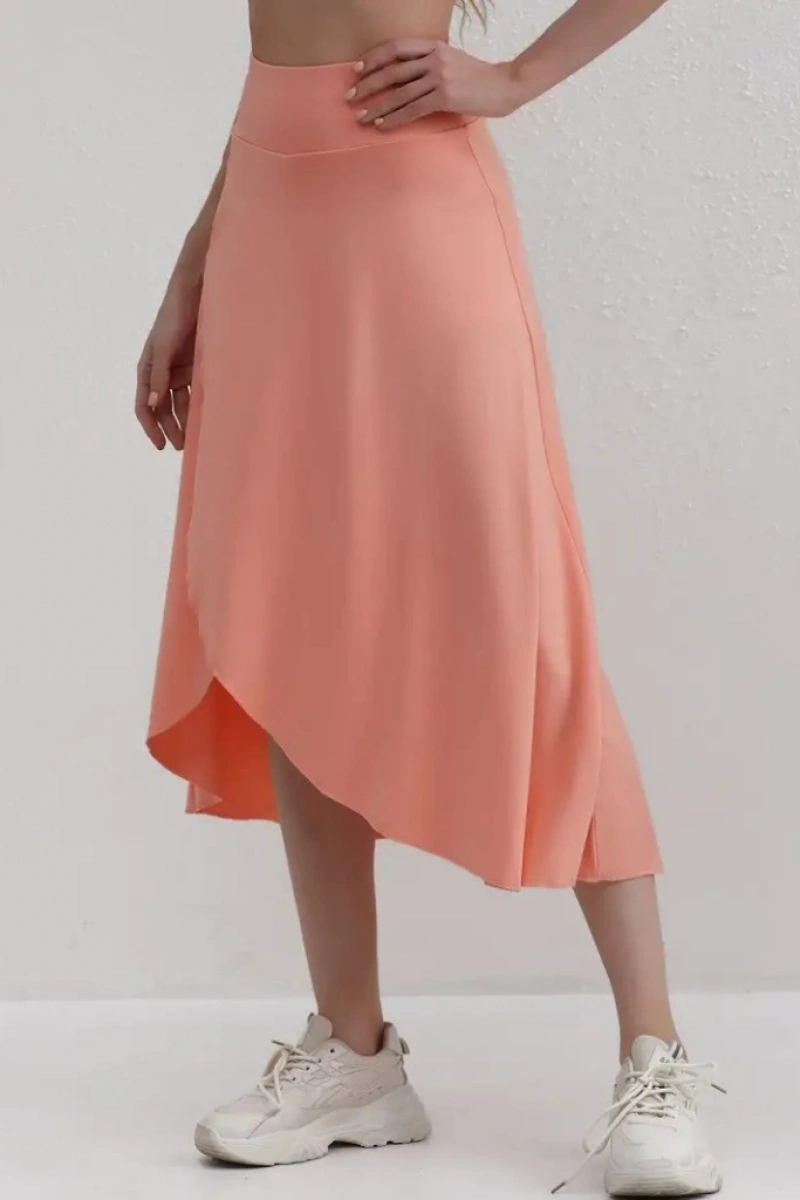 Kadın Beli Lastikli Bağcıklı Asimetrik Kesim Detaylı Desenli Bürümcük Etek