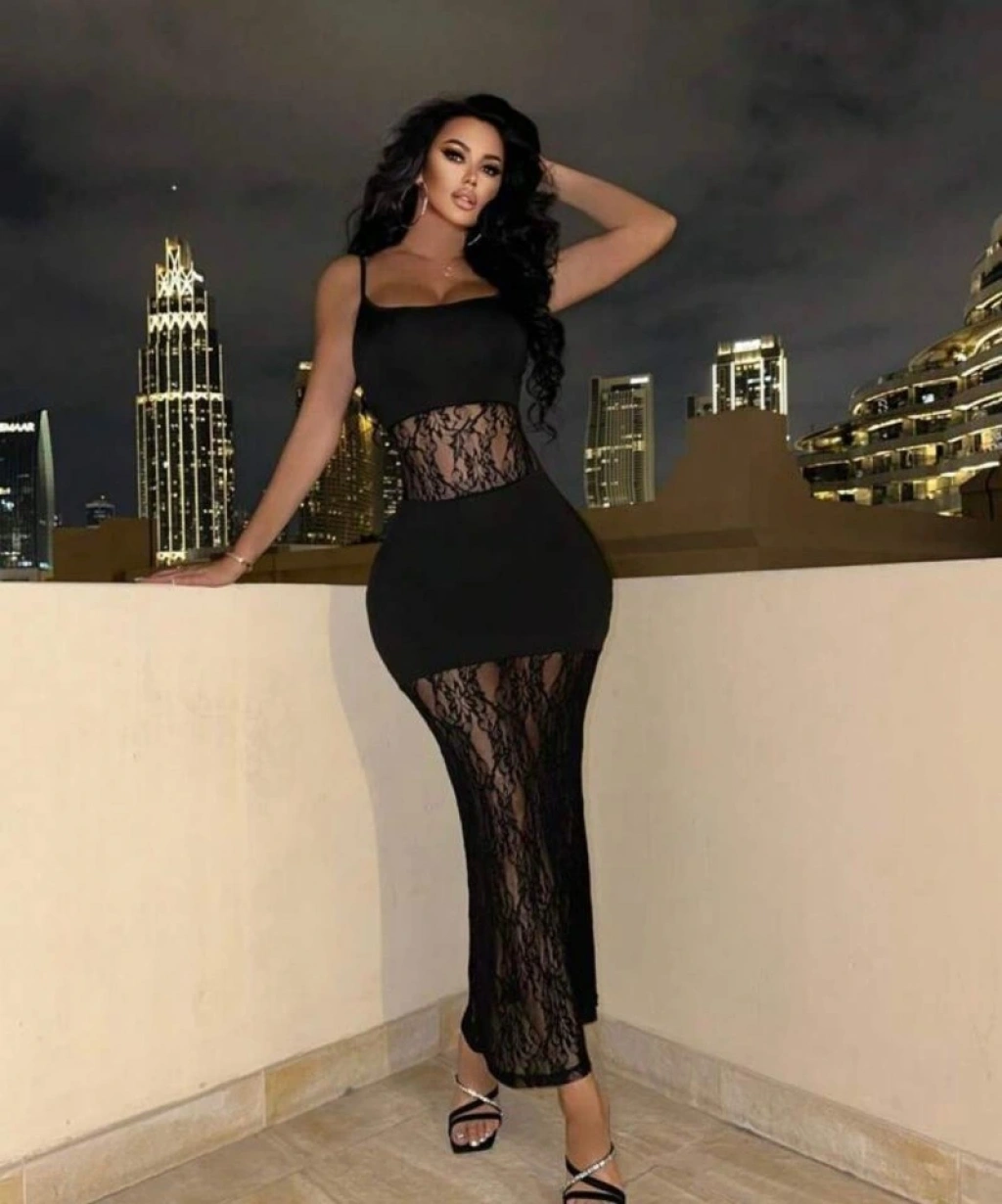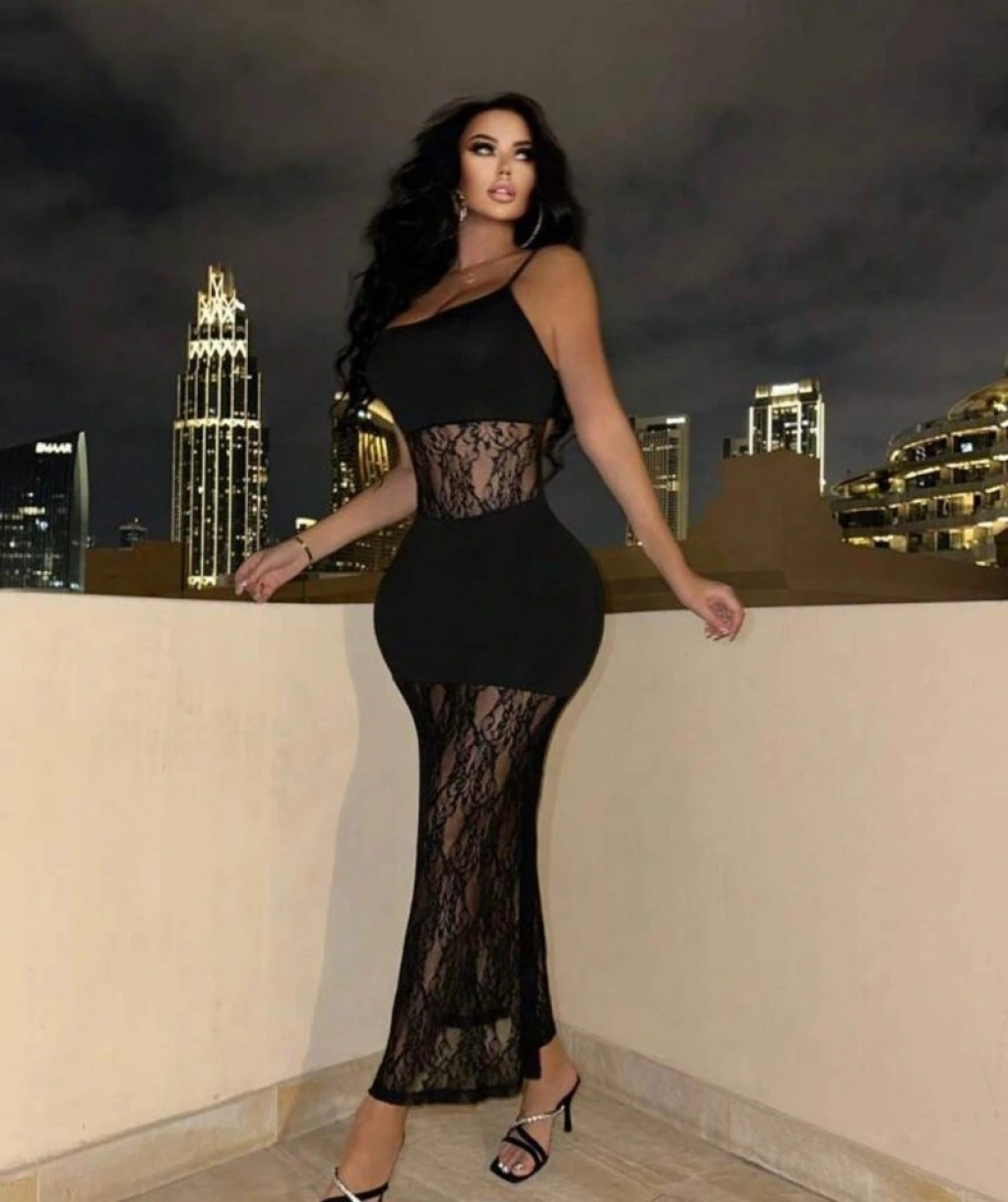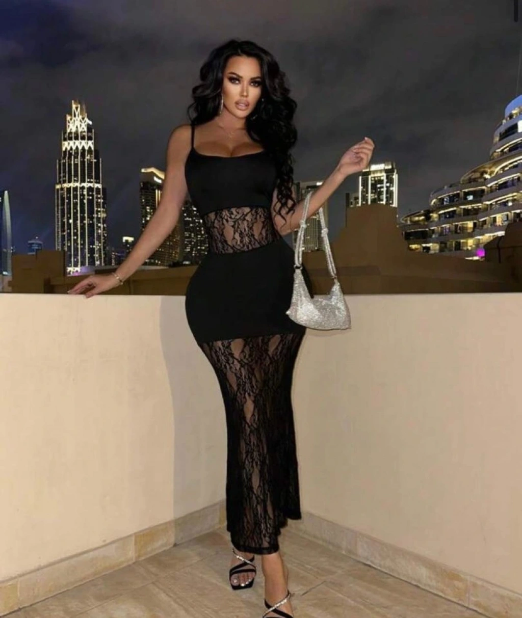 Kadın Dalgıç Kumaş Dantel Detaylı Maxi Boy Elbise