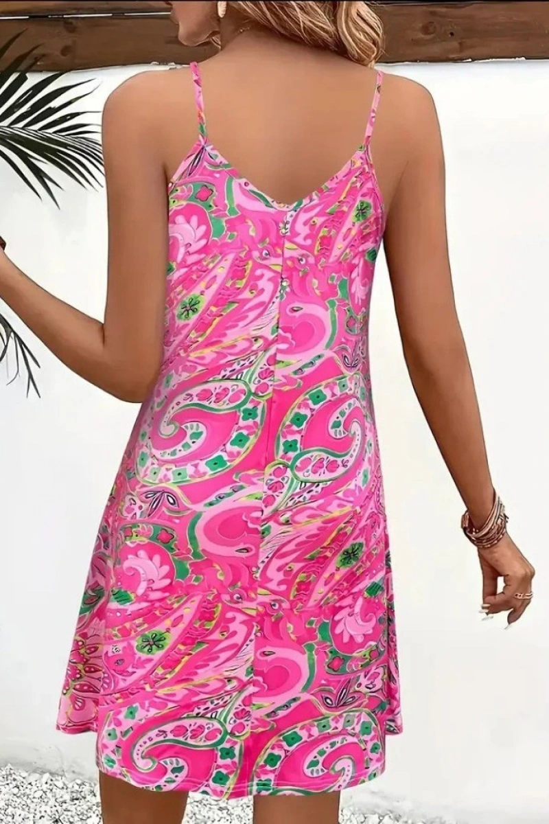 Kadın Ip Askılı V Yakalı Desenli Kısa Süprem Mini Elbise