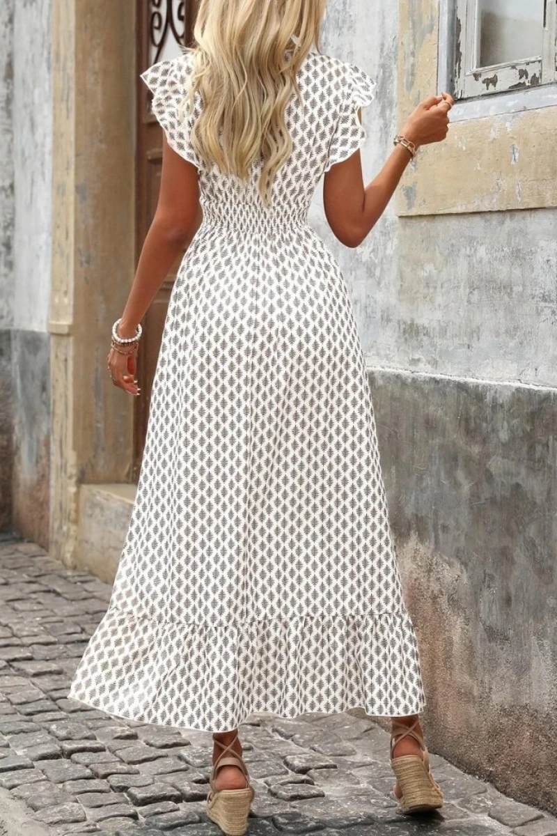 Kadın Kısa Kelebek Kollu Kruvaze Yakalı Desenli Süprem Elbise