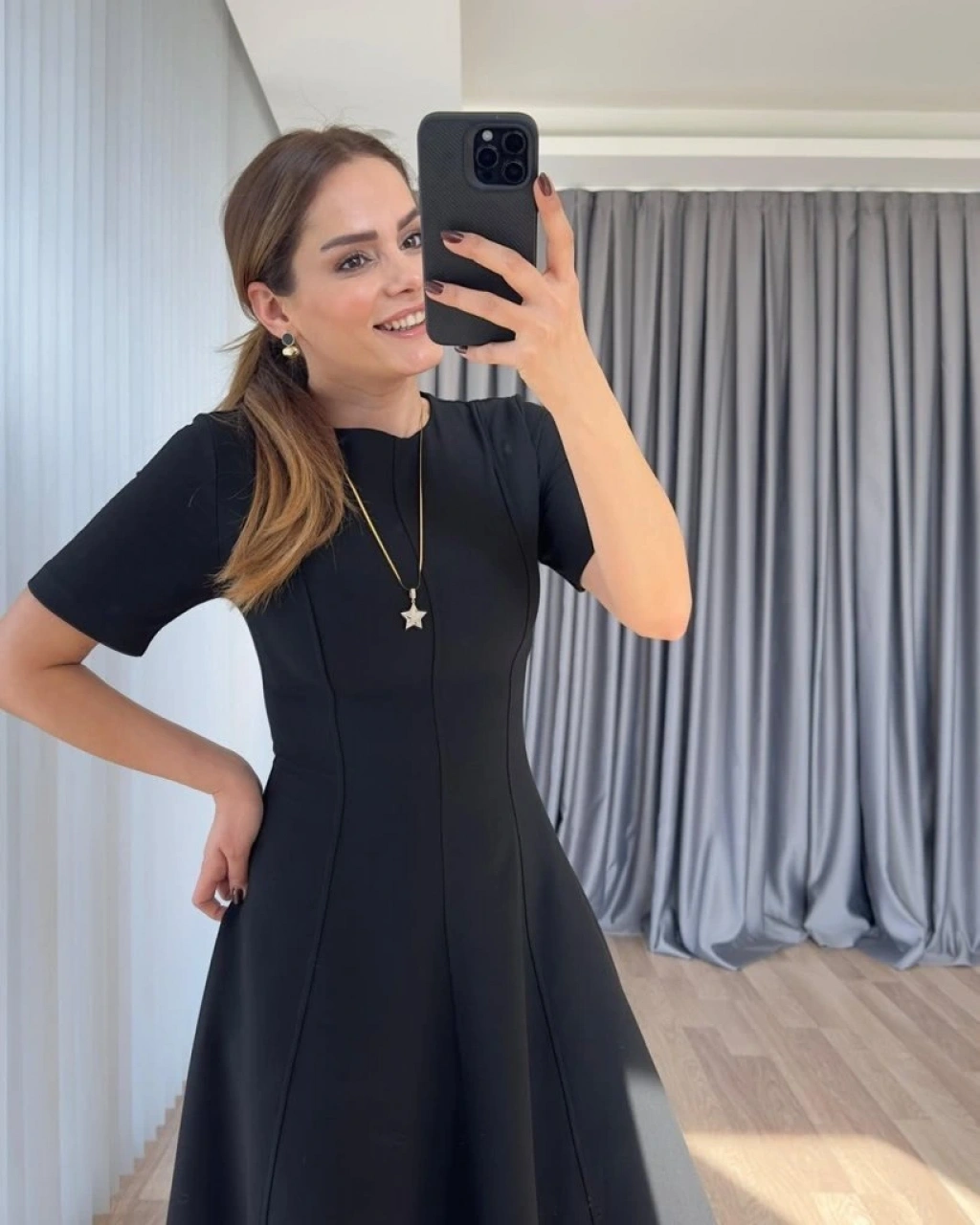 Kadın Kısa Kollu Bisiklet Yaka Maksi Boy Ithal Krep Elbise