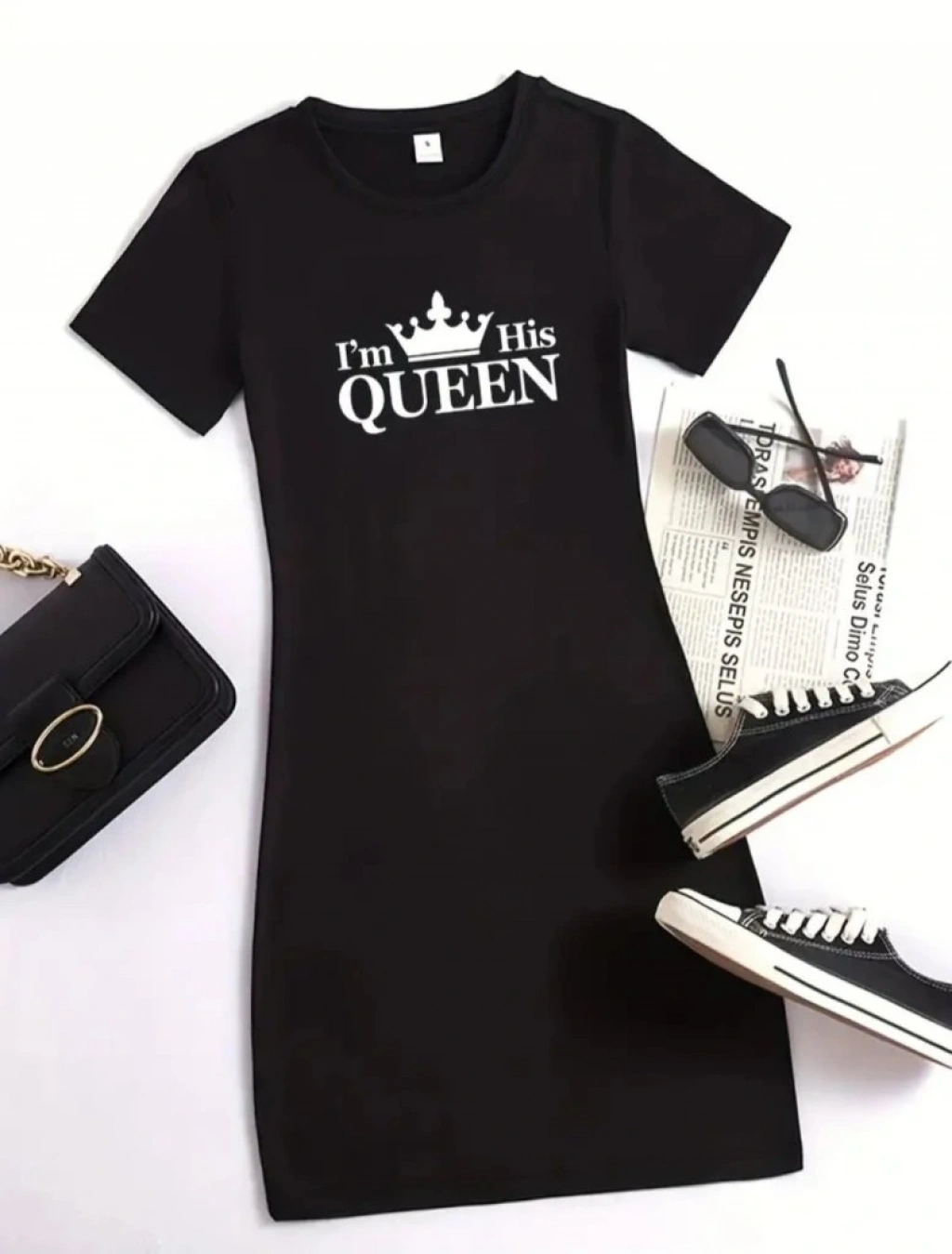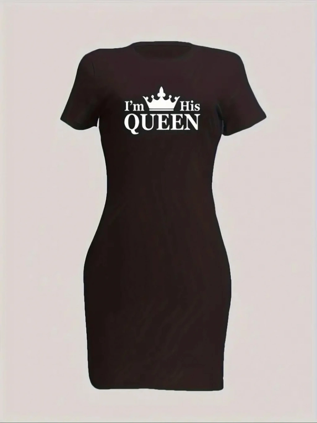Kadın Kısa Kollu Queen Baskı Iki Iplik Mini Elbise