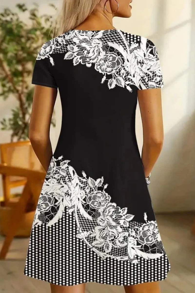 Kadın Kısa Kollu V Yakalı çiçek Baskılı Süprem Elbise
