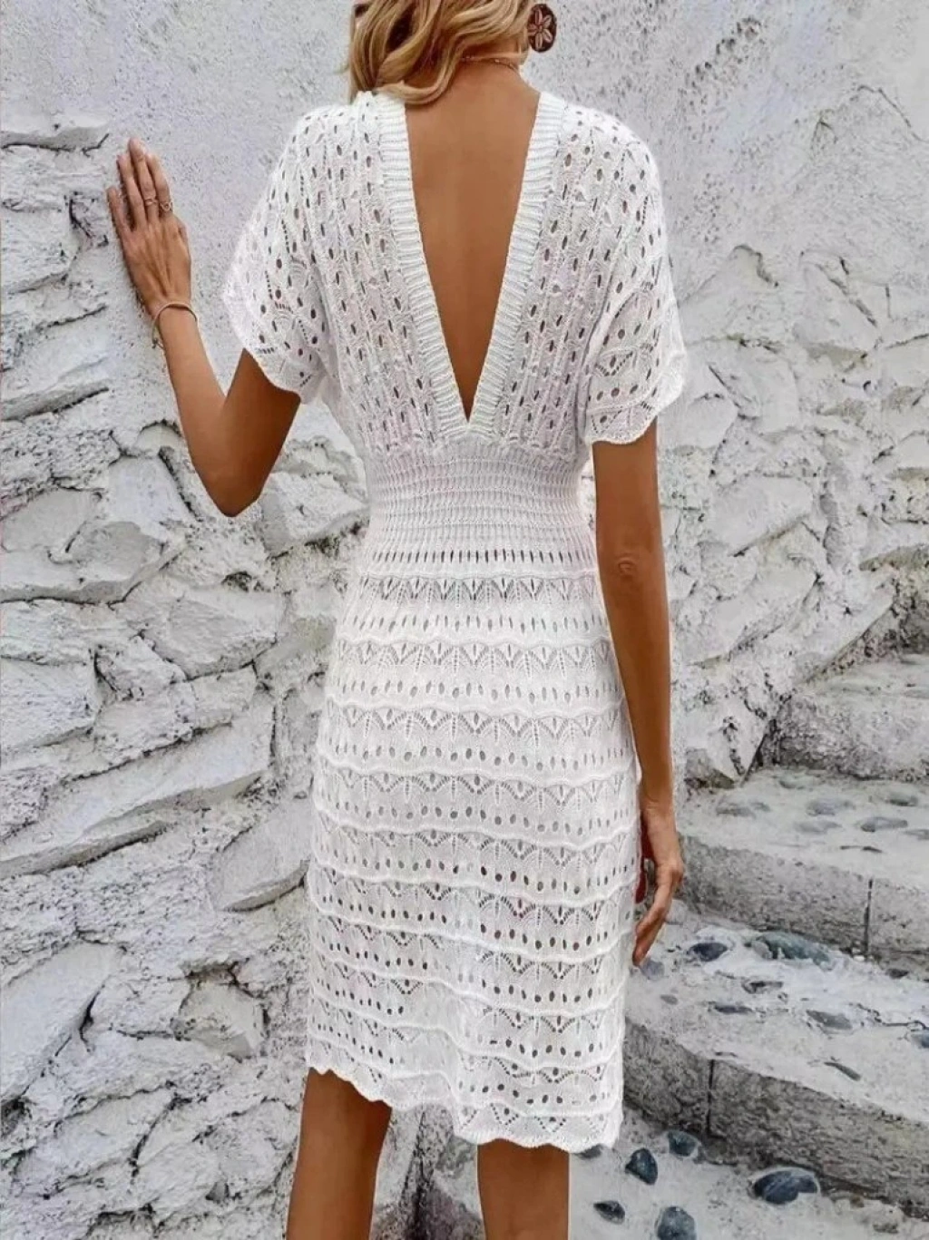 Kadın Kısa Kollu V Yakalı örme Triko Elbise