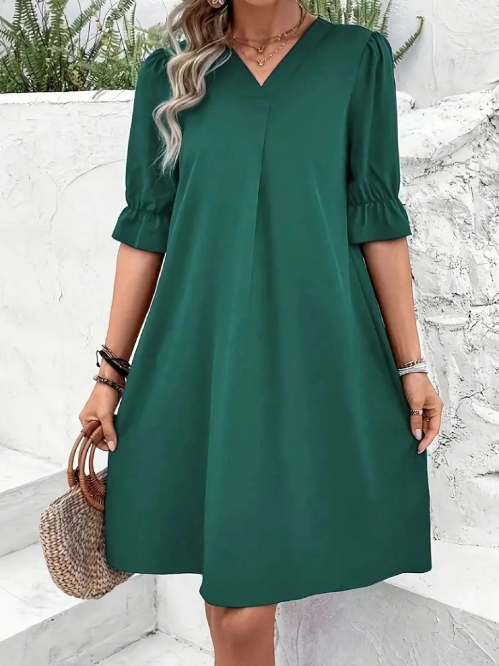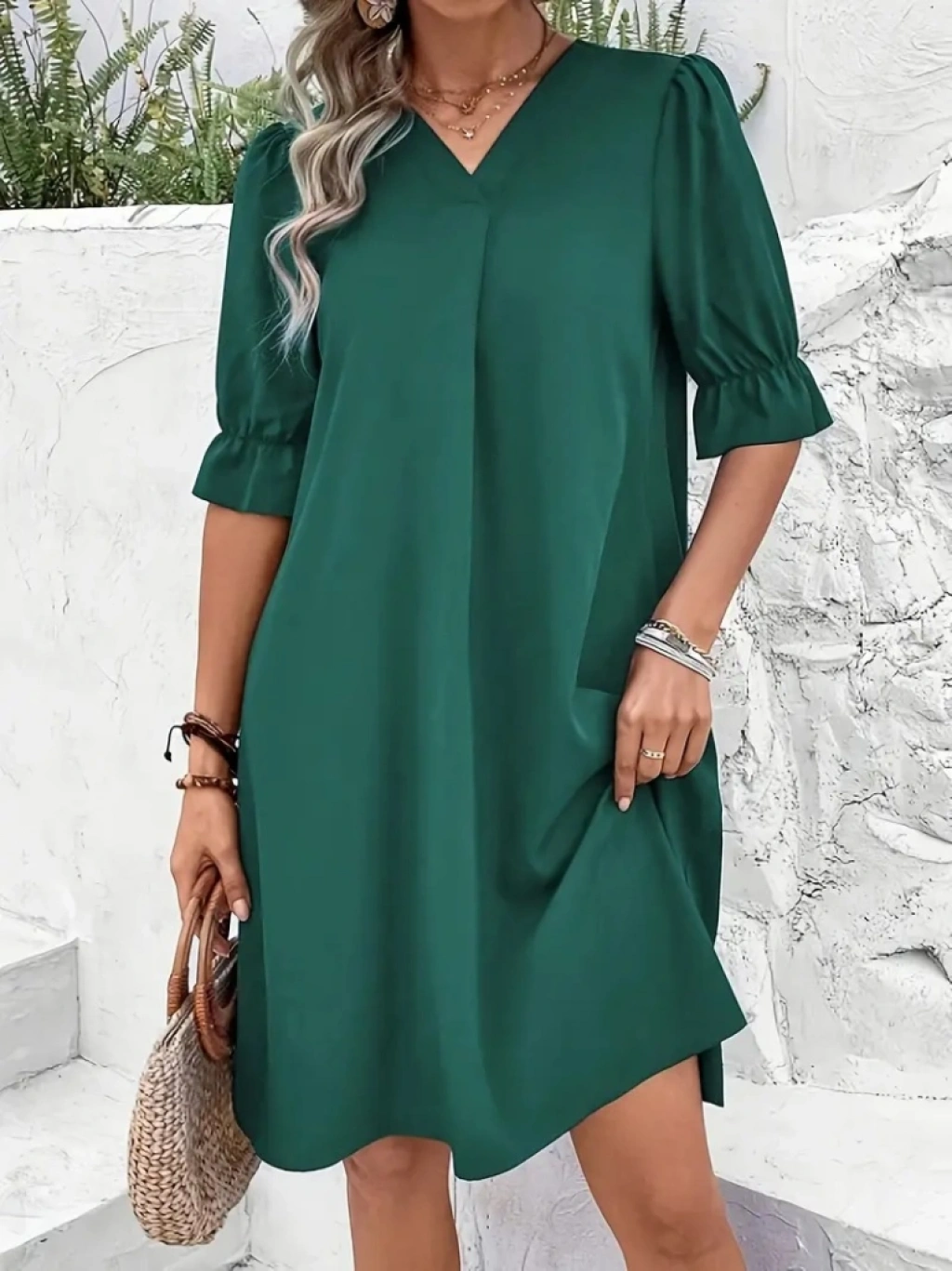 Kadın Kısa Kollu V Yakalı Salaş Janjan Krep Elbise
