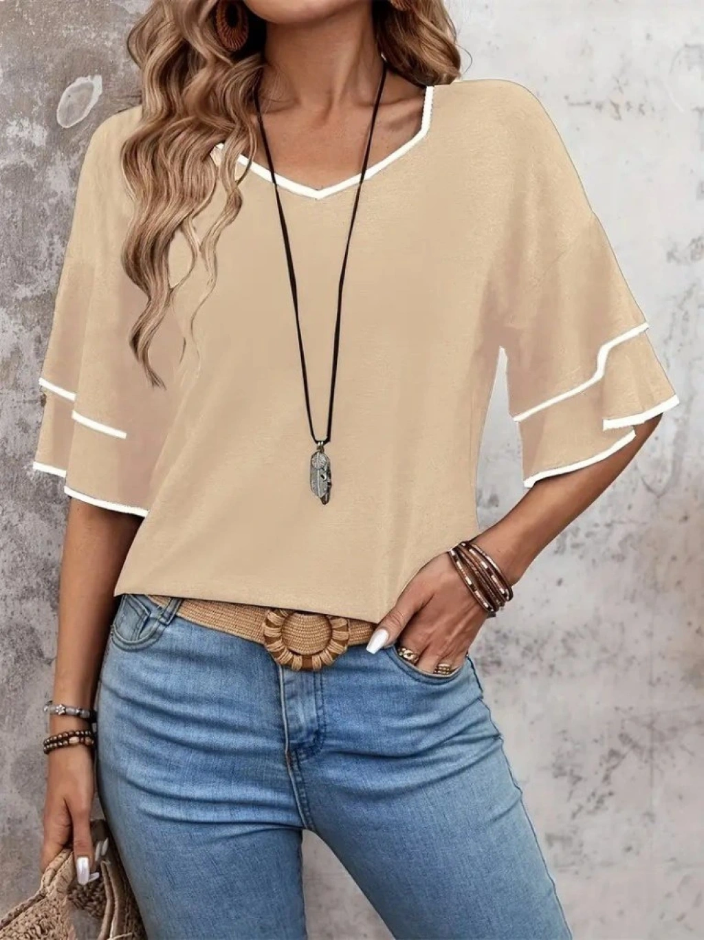 Kadın Kısa Kollu V Yakalı Viskon Bluz