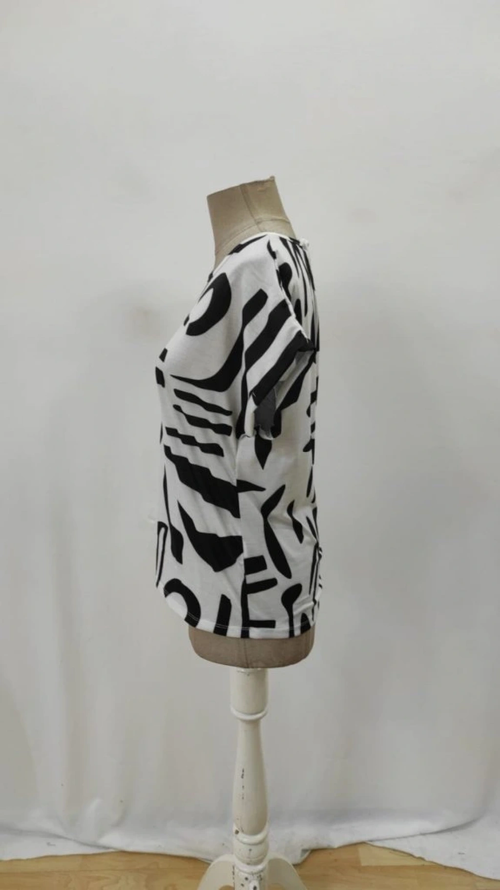 Kadın Kısa Kollu Yuvarlak Yaka Desenli Süprem Bluz