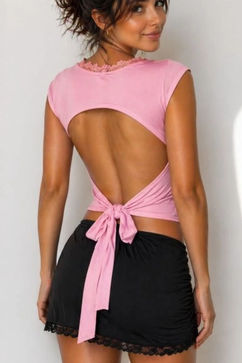 Kadın ön Arka Dantel Detay Kuşaklı Bluz