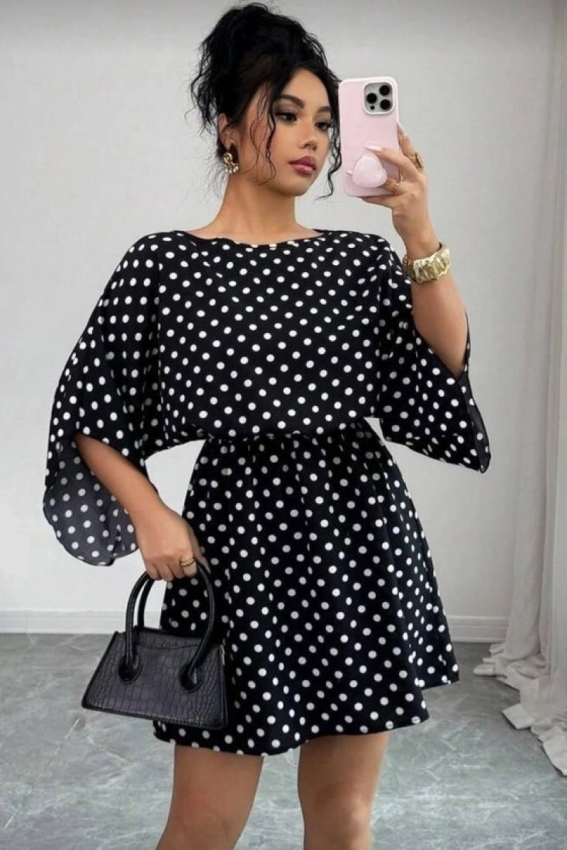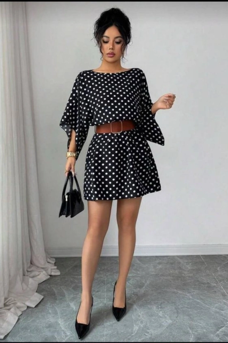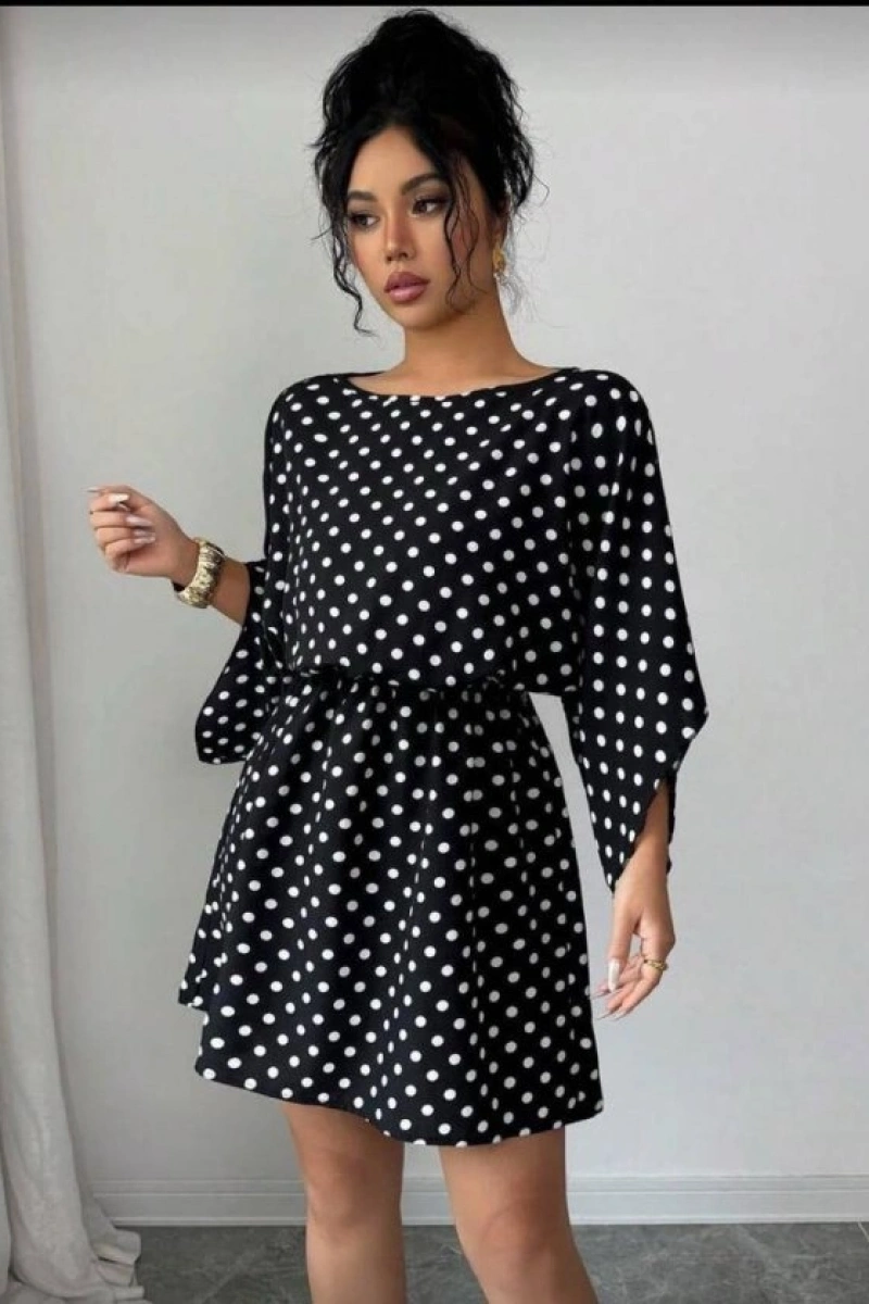 Kadın Puantiyeli örme Krep Mini Elbise (kemersiz)