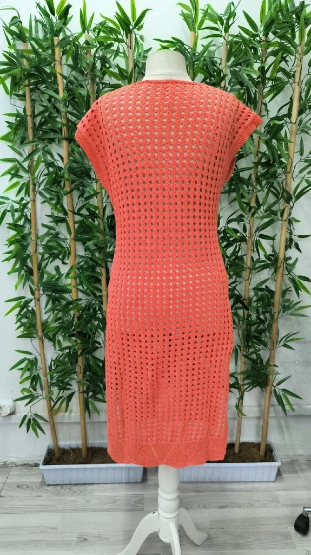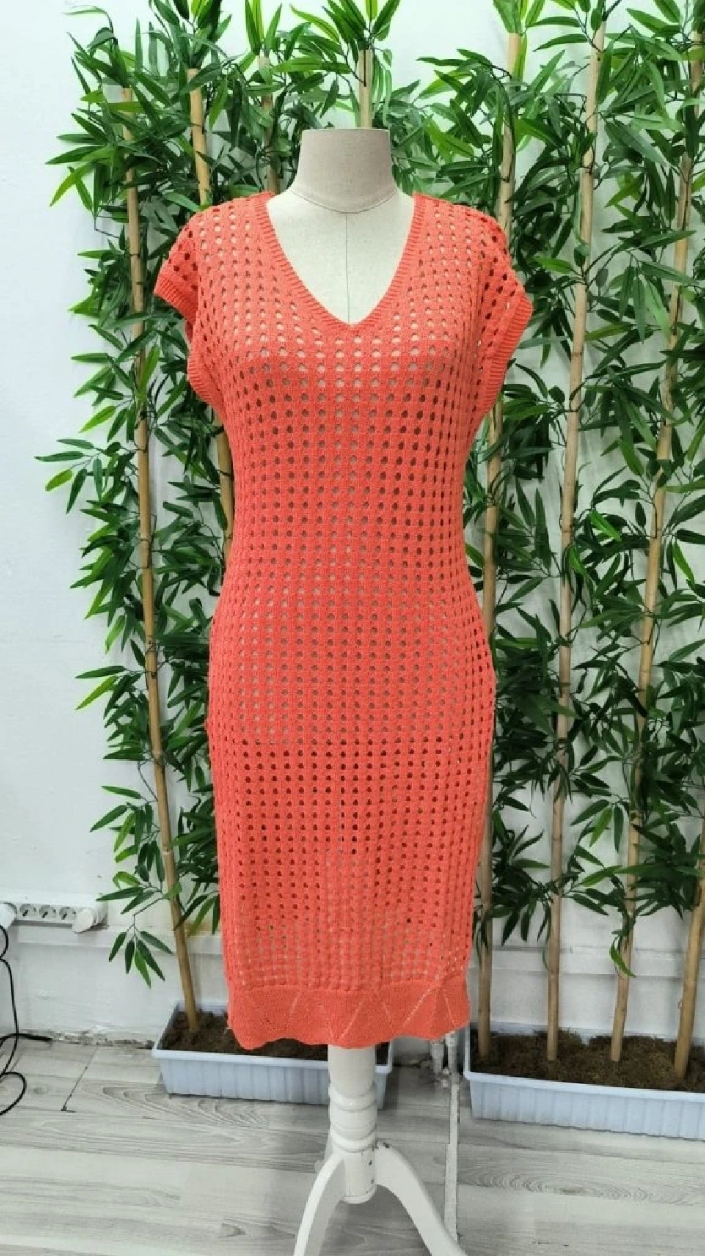 Kadın Sıfır Kol V Yaka Yanı Derin Yırtmaçlı Midi Boy Triko Elbise