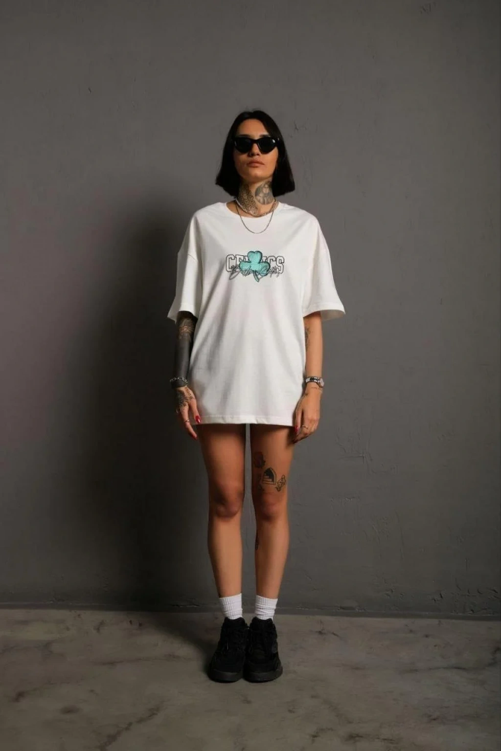 Kadın Sırt Baskılı T-shirt - Beyaz