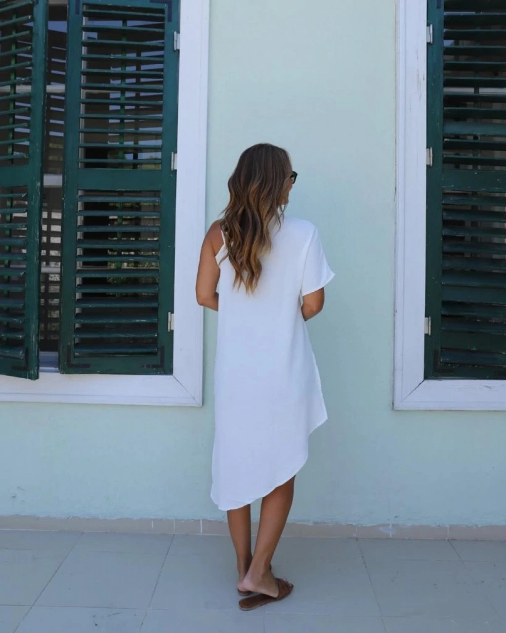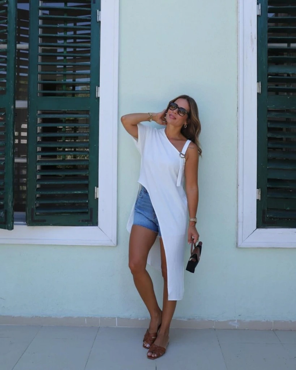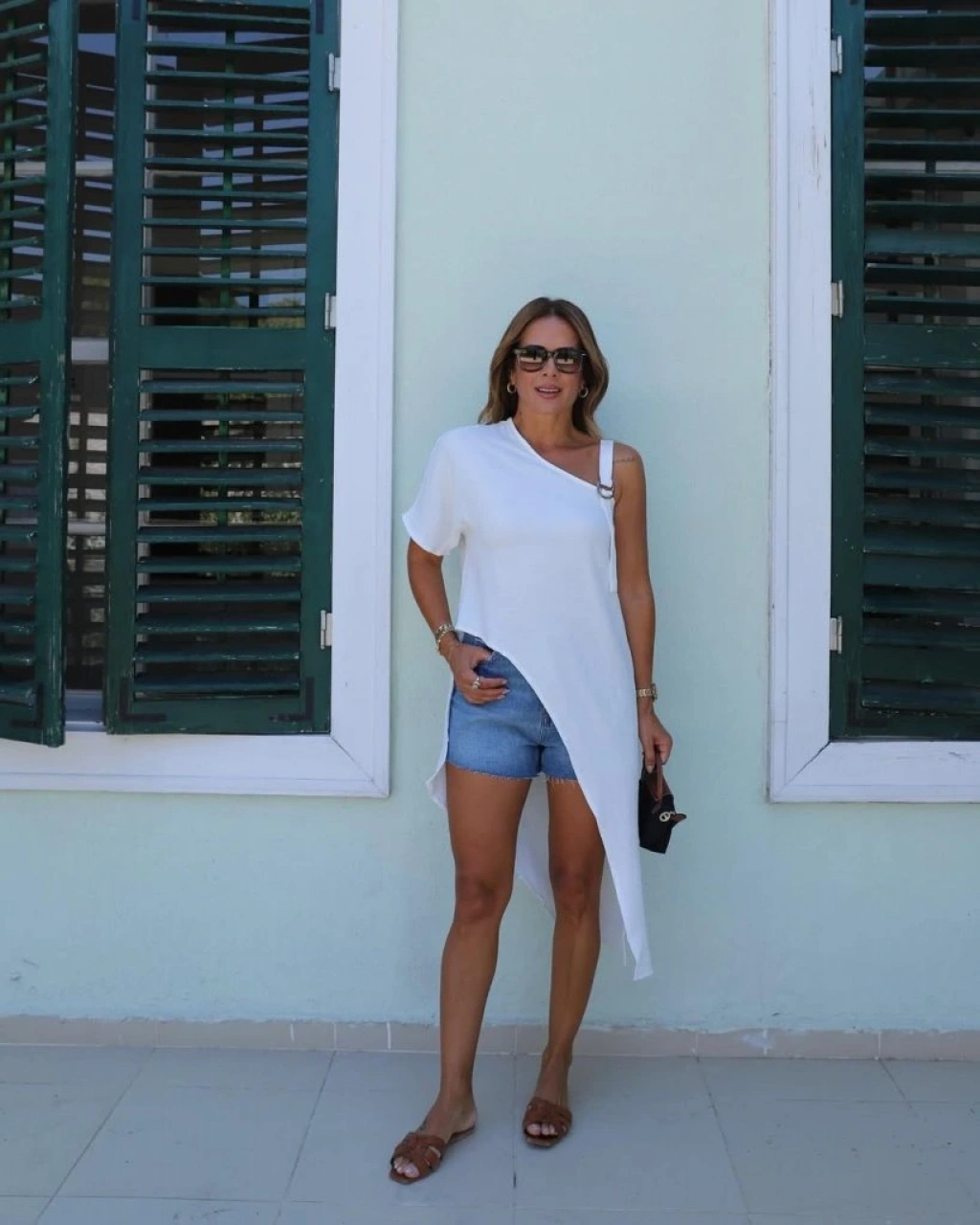 Kadın Tek Omuzu Açık Askılı Asimetrik Kesim Detaylı Bluz