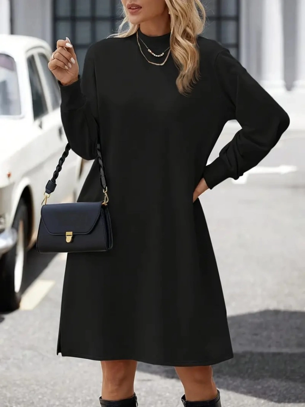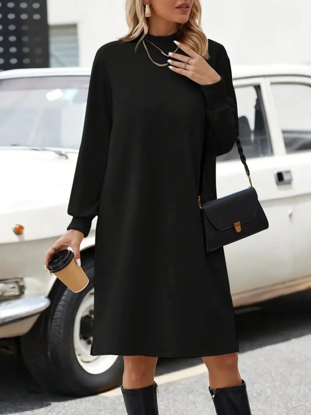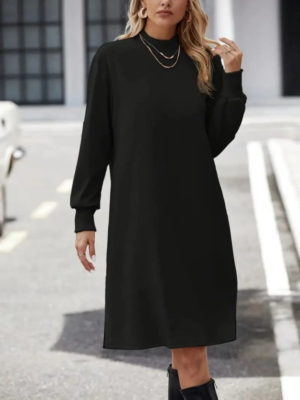 Kadın Uzun Kollu Balıkçı Yaka Kısa şardonlu Dalgıç Elbise