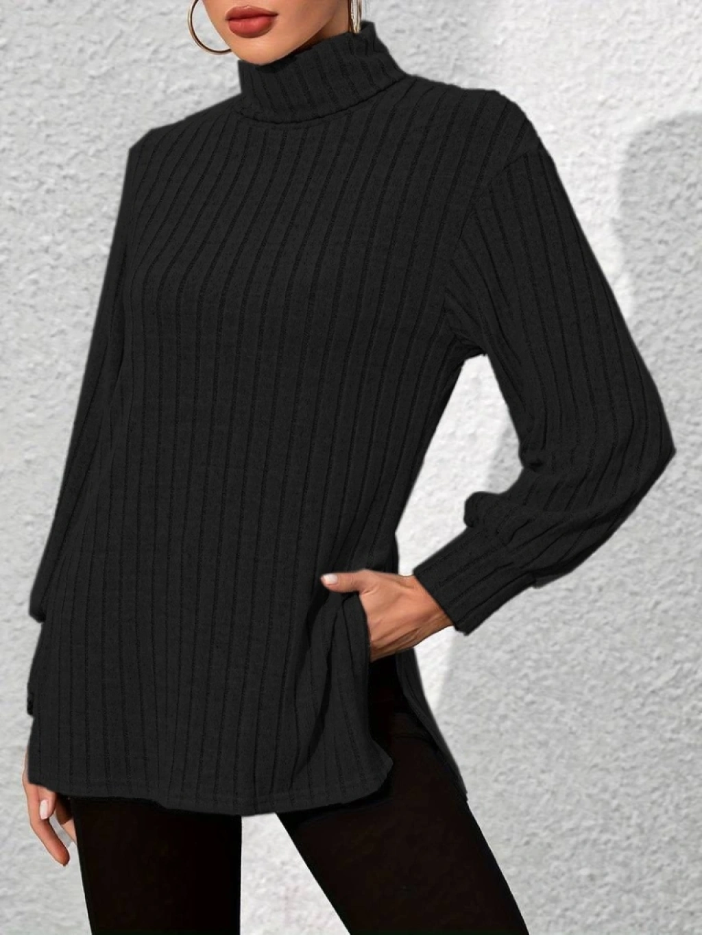 Kadın Uzun Kollu Balıkçı Yaka Yandan Yırtmaçlı şardonlu Kaşkorse Bluz