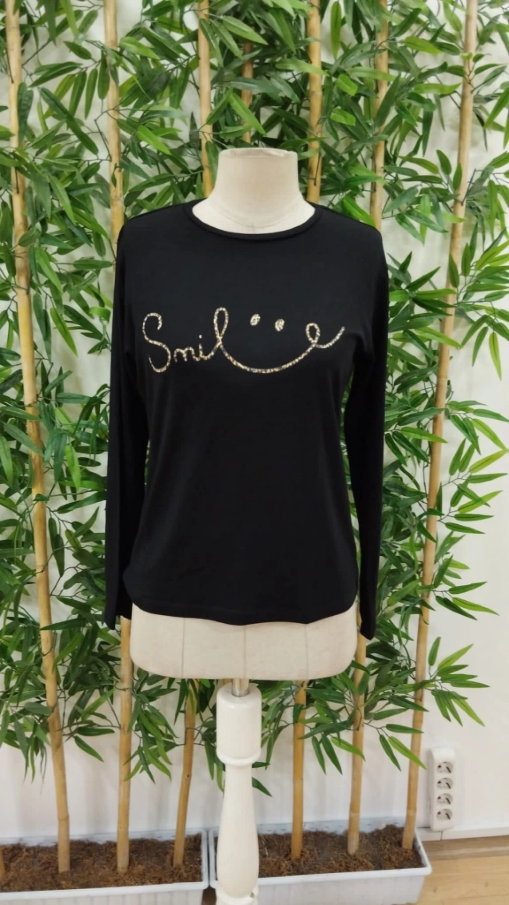 Kadın Uzun Kollu Bisiklet Yaka Gülümseyen Surat Desenli Viskon Bluz