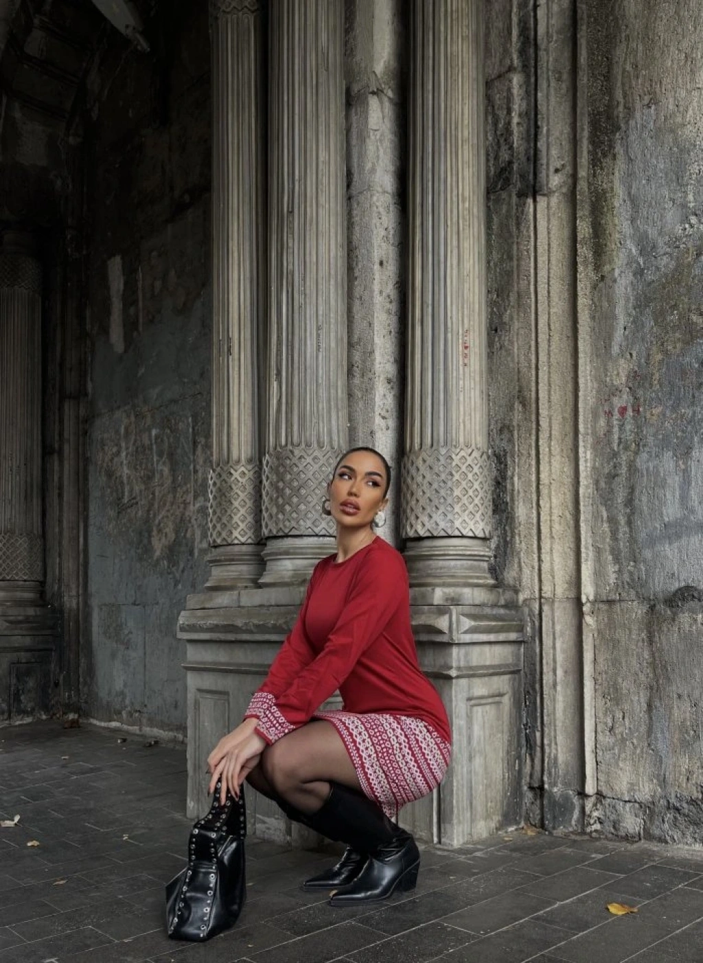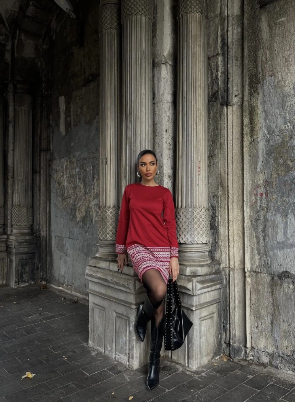 Modelin Ölçüleri: Boy:165, Kg:55, Göğüs:90, Bel:72, Kalça: 100