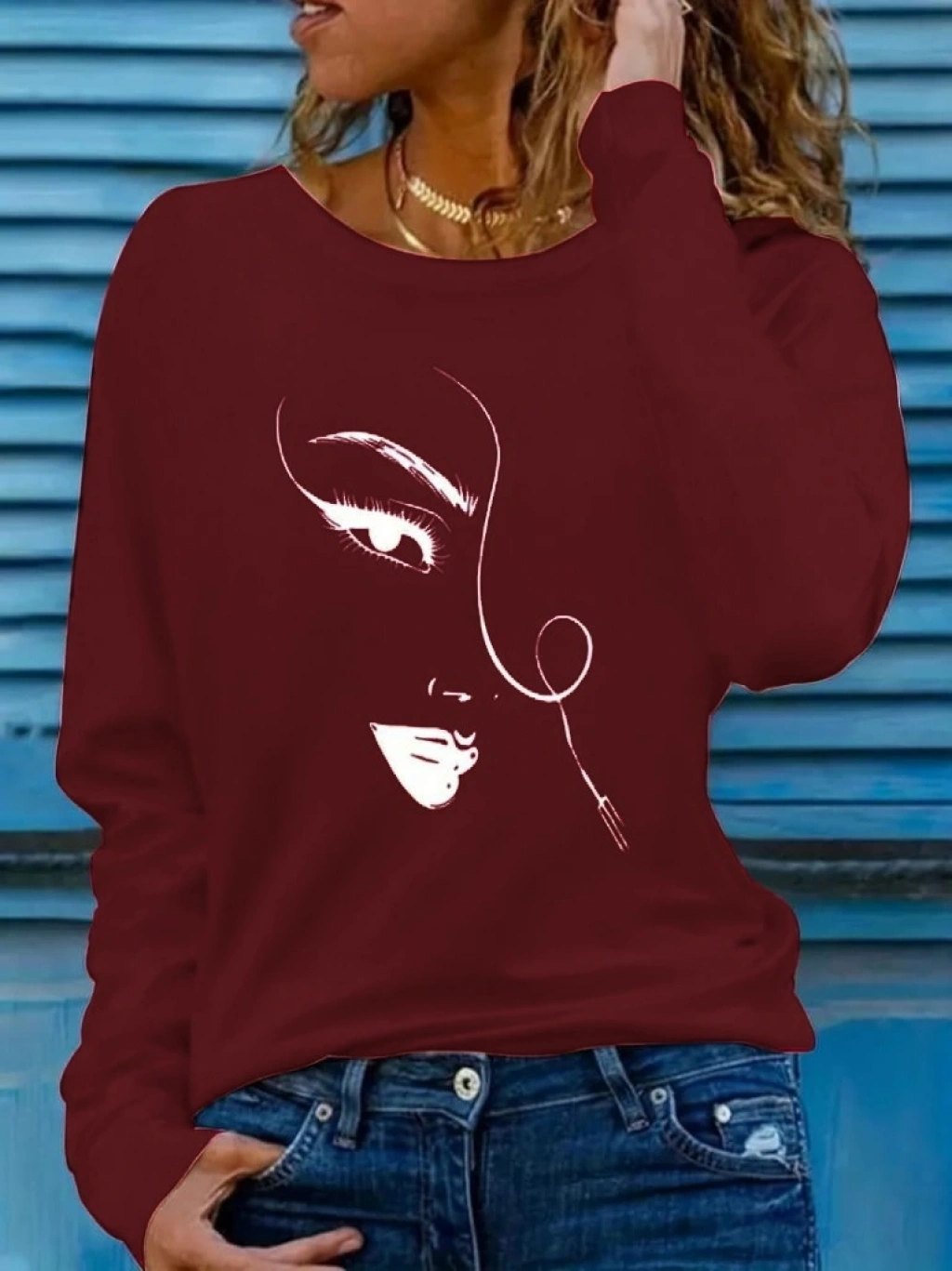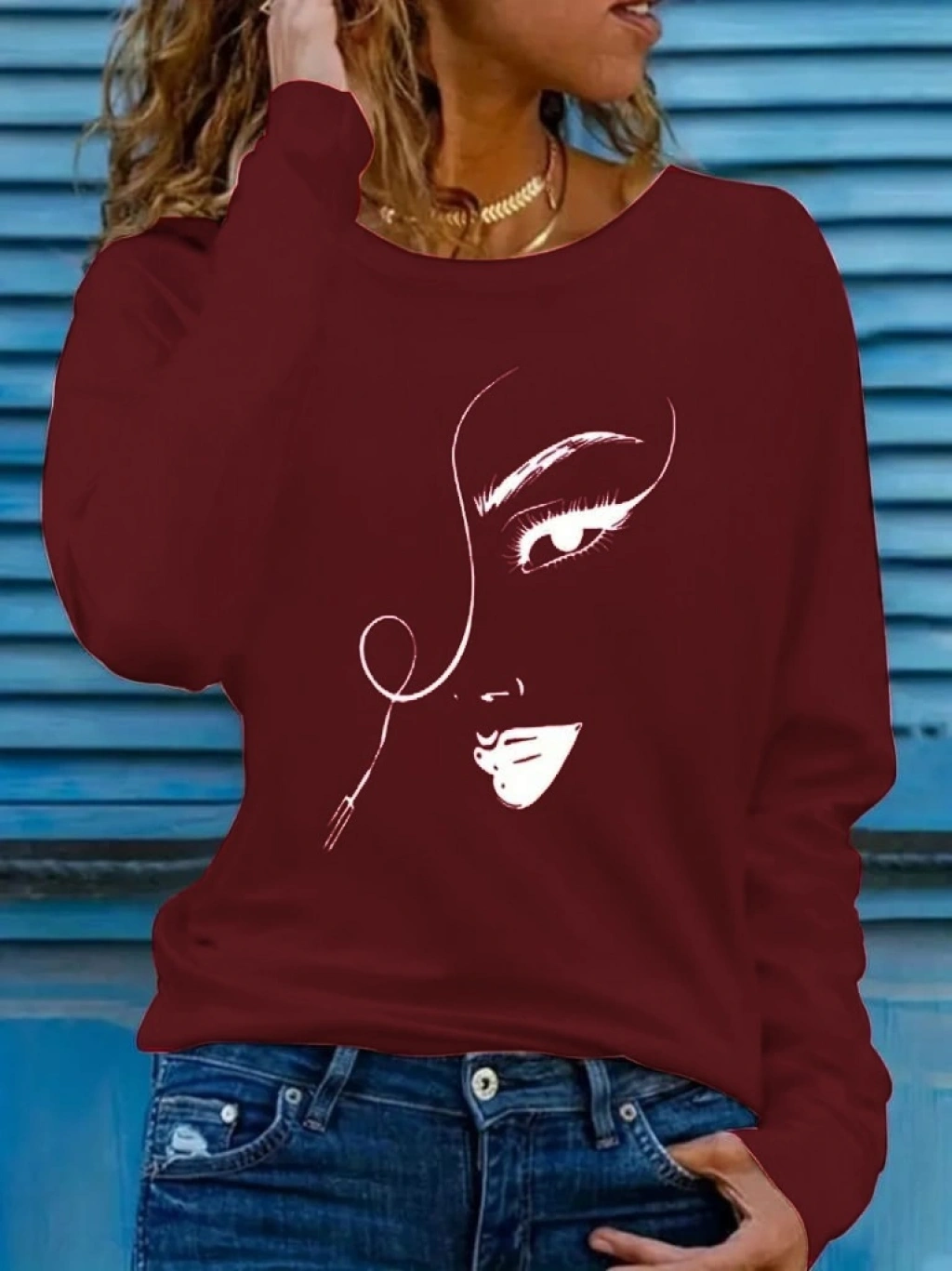 Kadın Uzun Kollu Bisiklet Yaka Yüz Desenli Viskon Bluz