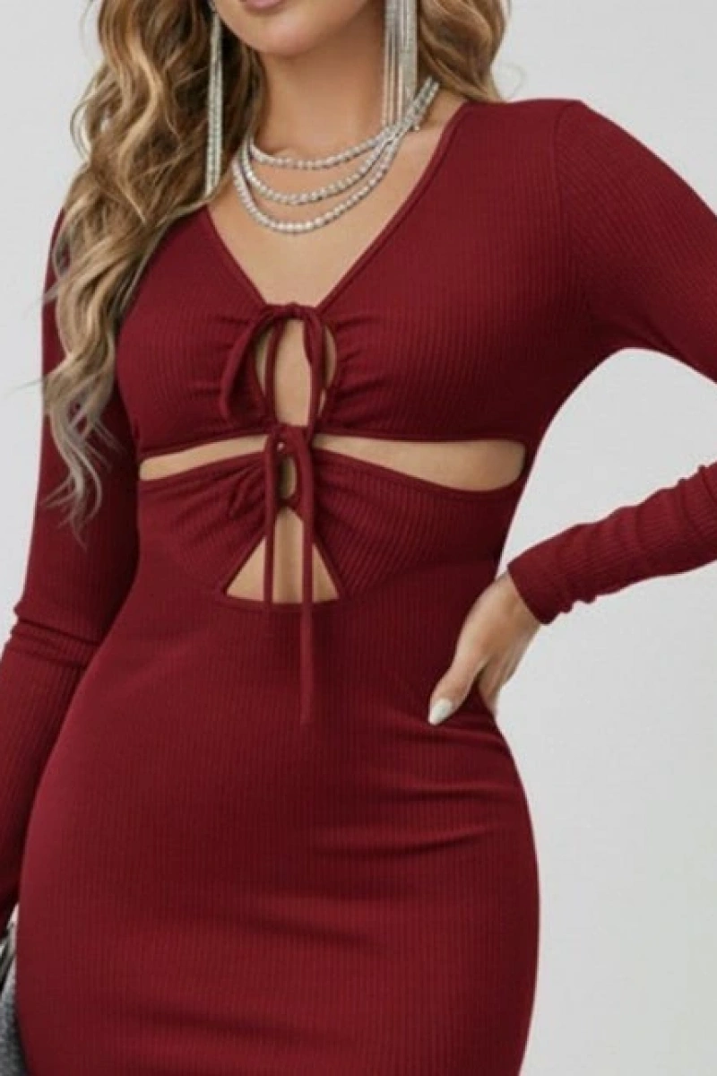 Kadın Uzun Kollu Göğüs Ve Göbek Dekolte Detay Sandy Midi Boy Elbise