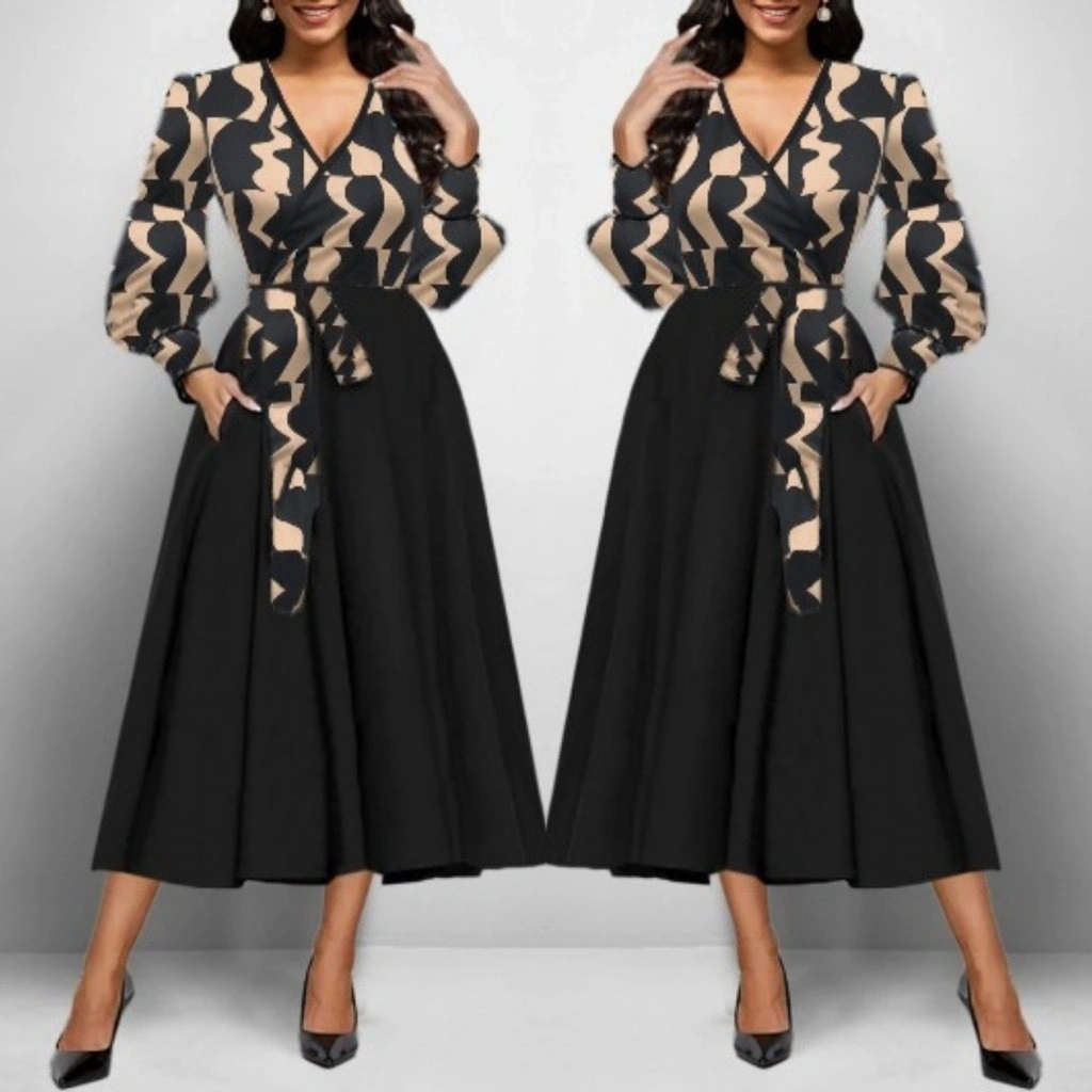 Kadın Uzun Kollu Kruvaze Yaka Dalgıç Krep Midi Boy Elbise
