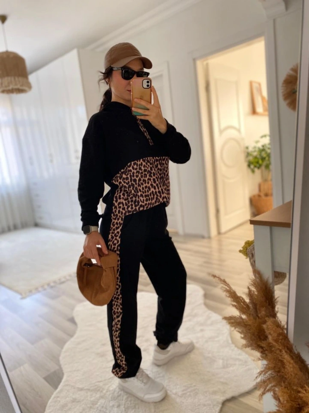 Kadın Uzun Kollu Leopar Detay Sweat Ve Yanı Leopar şerit Detay Pantolon Ikili Takım