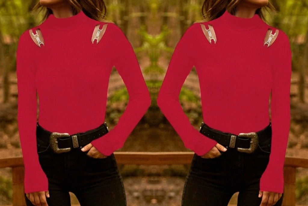 Kadın Uzun Kollu Omuz Dekolte Ve Aksesuar Detay Viskon Bluz