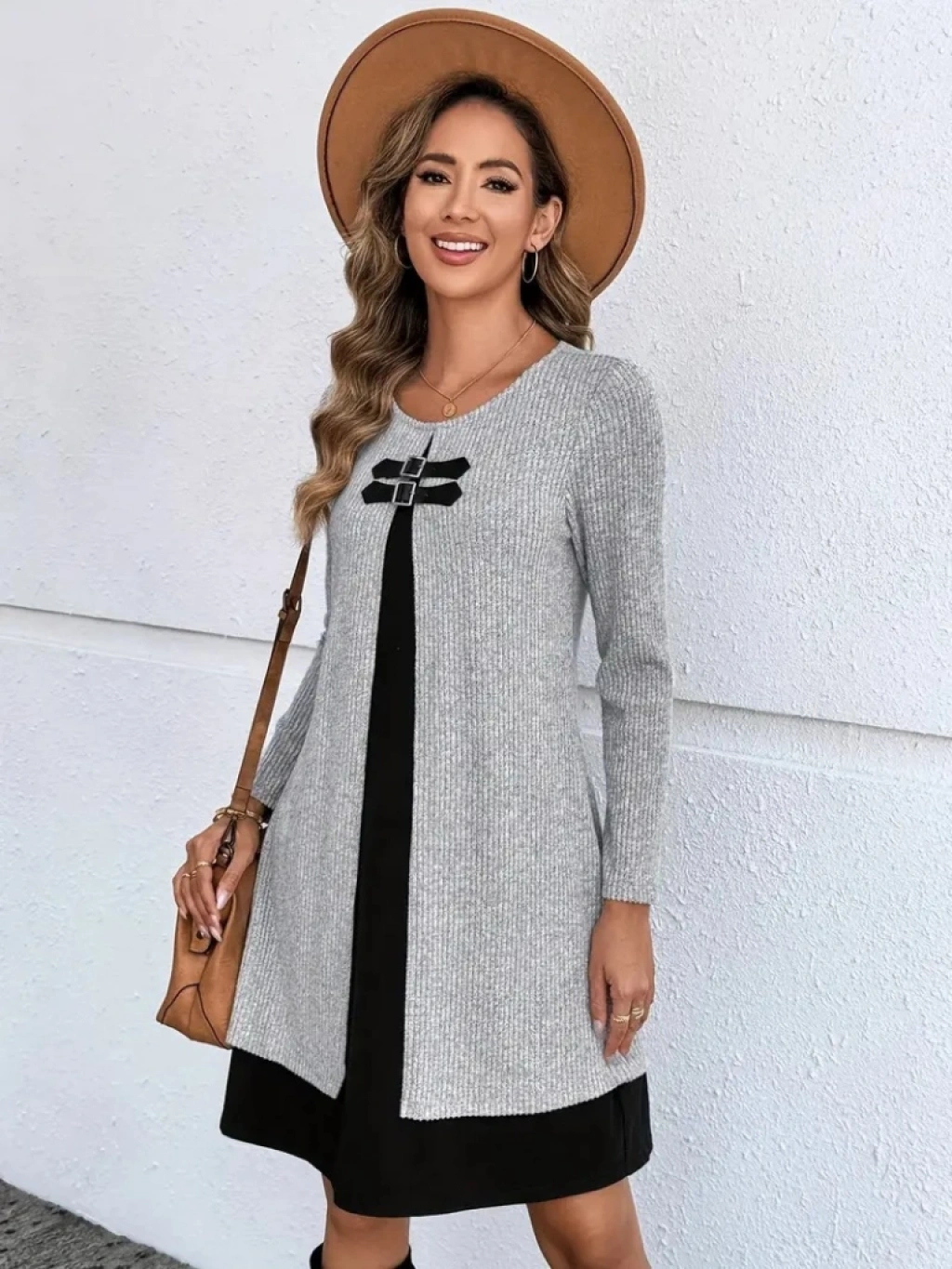 Kadın Uzun Kollu önü Tokalı şardonlu Kaşkorse Iç Kısmı Viskon Midi Elbise Ikili Takım