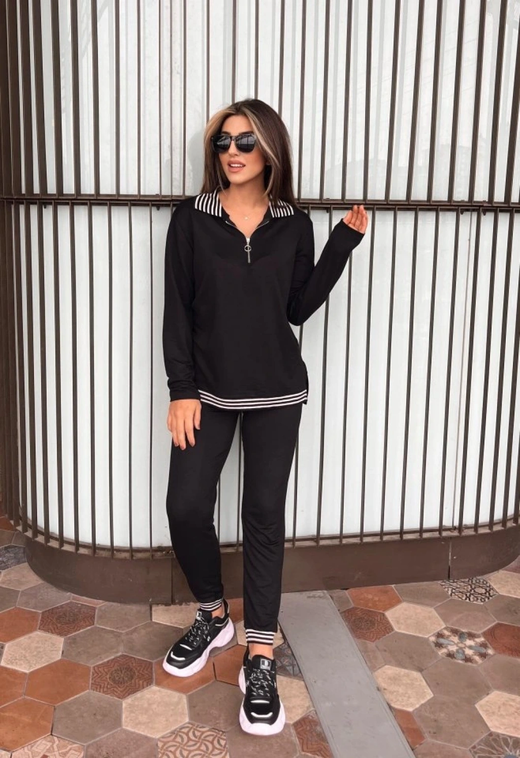 Kadın Uzun Kollu Ribana Ve Fermuar Detay Bluz Ve Yüksel Bel Pantolon 2li Takım