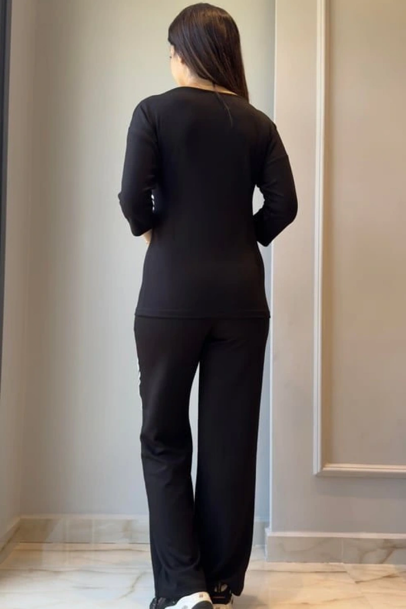 Kadın Uzun Kollu Bisiklet Yaka çift Renkli Viskon Iki Iplik Bluz Ve Pantolon Ikili Takım