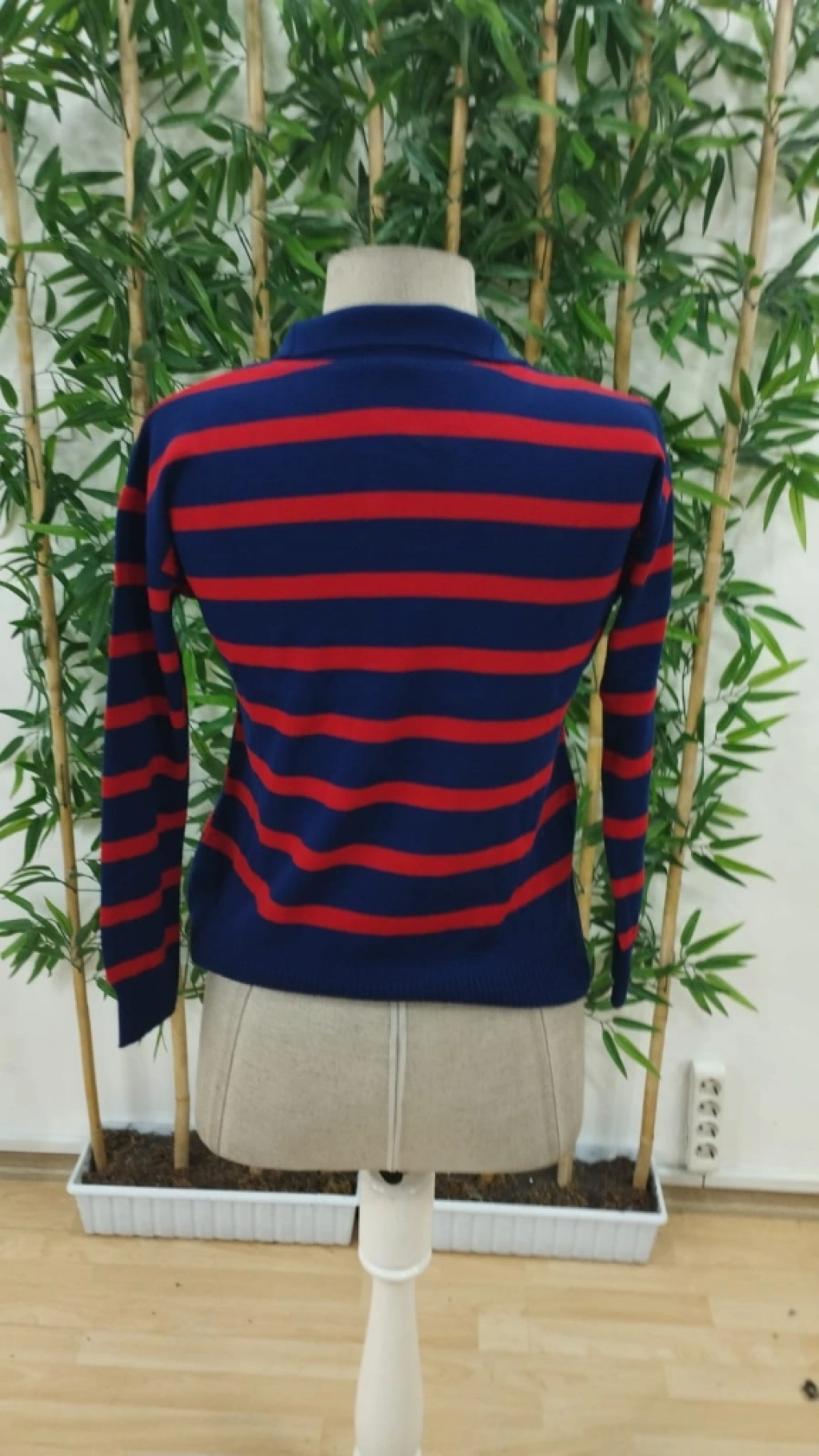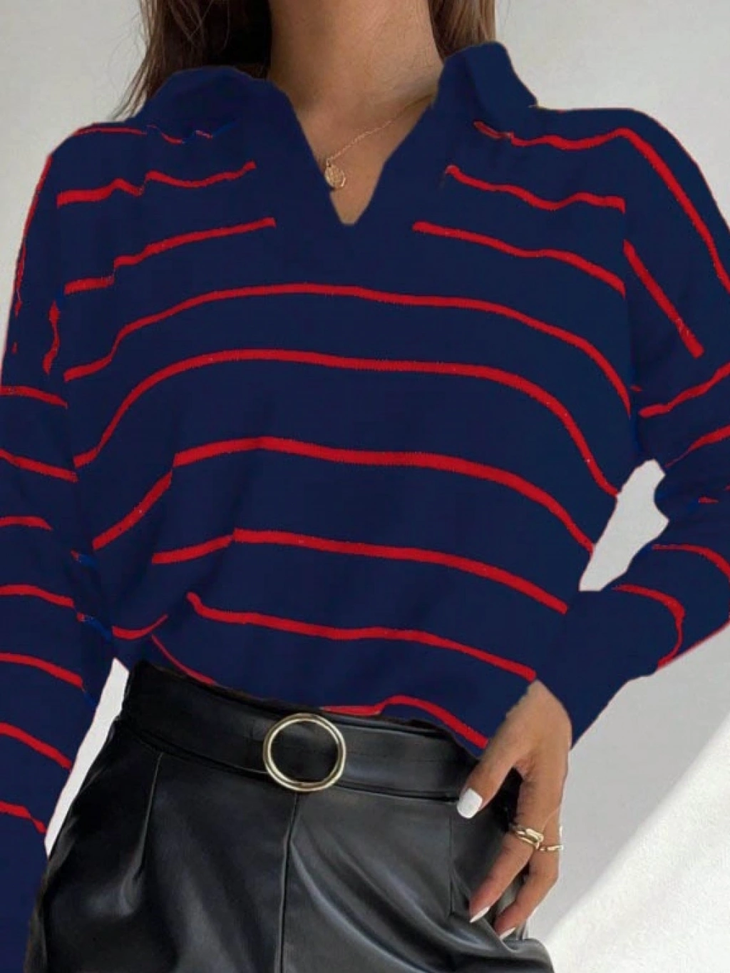 Kadın Uzun Kollu V Yaka çizgili Triko Bluz