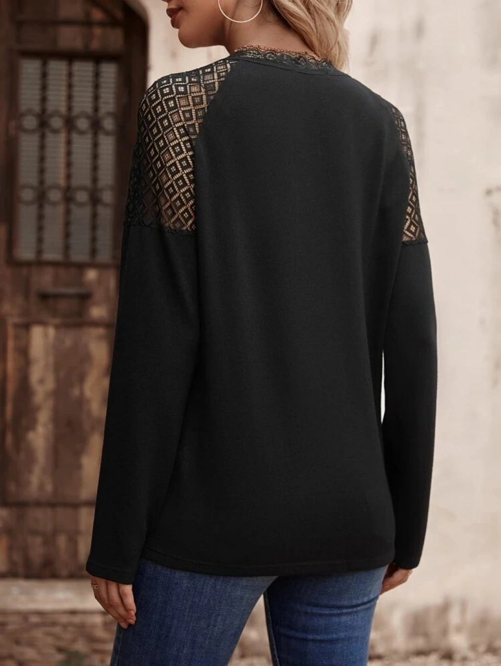 Kadın Uzun Kollu V Yakalı Dantel Detaylı Viskon Bluz
