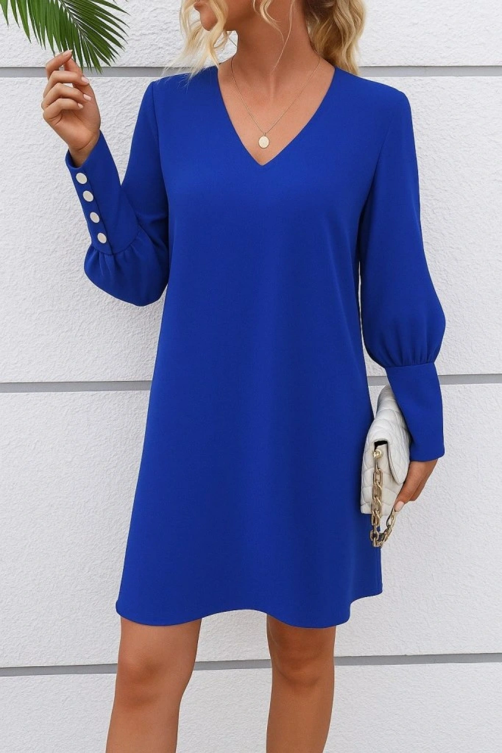 Kadın Uzun Kollu V Yakalı Kısa Ithal Krep Elbise