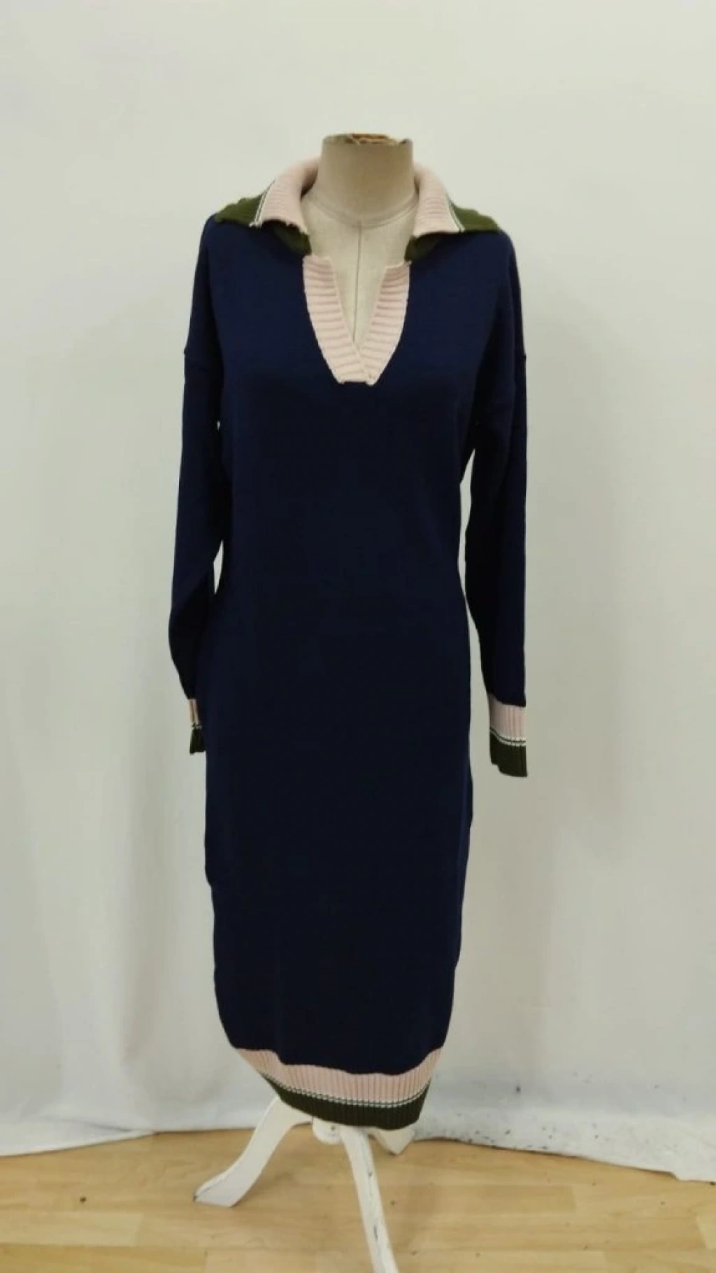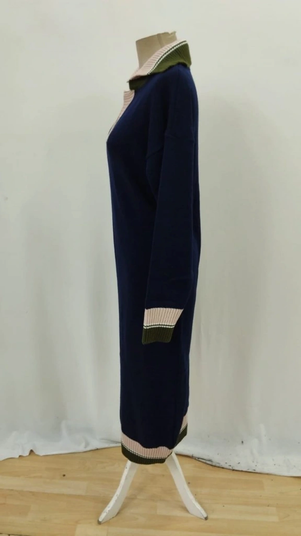 Kadın Uzun Kollu Yakalı çok Renkli Triko Uzun Elbise