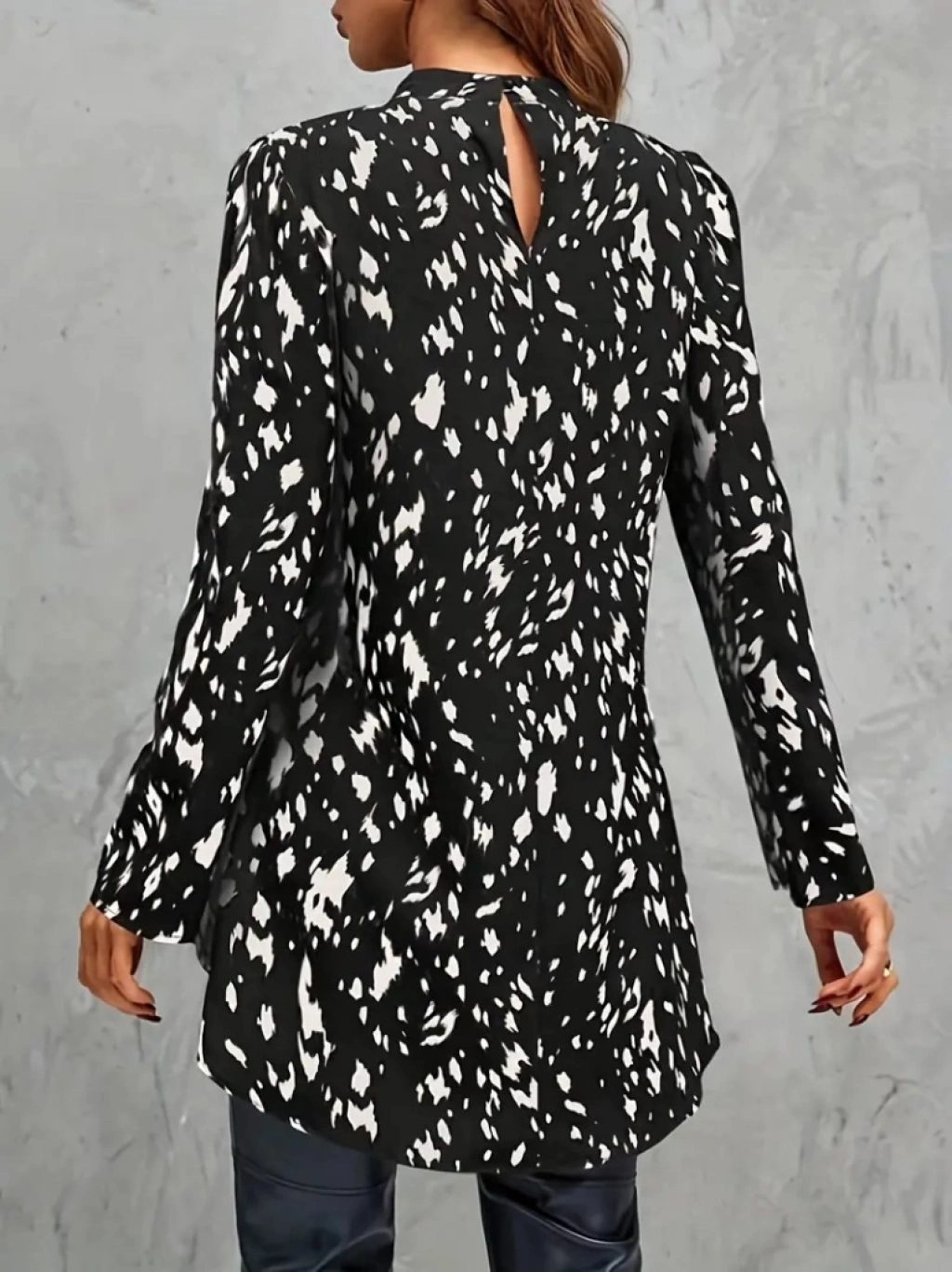 Kadın Uzun Kollu Yarı Balıkçı Yaka Desenli Dokuma Bluz
