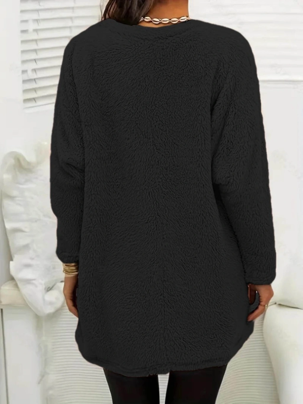 Kadın Uzun Kollu Yuvarlak Yakalı Cepli Peluş Bluz