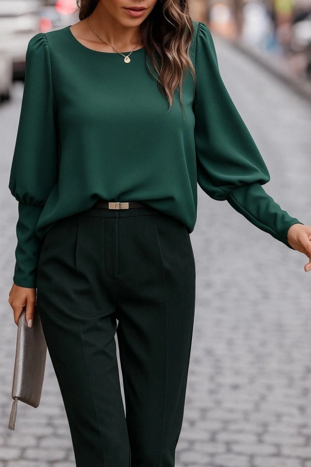 Kadın Uzun Kollu Yuvarlak Yakalı Düğmeli Ithal Krep Bluz