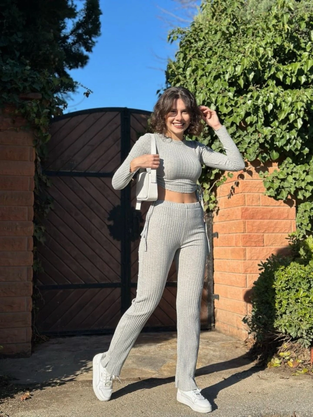 Kadın Yandan Bağlamalı Geniş Paçalı Fitil Kaşkorse İkili Takım