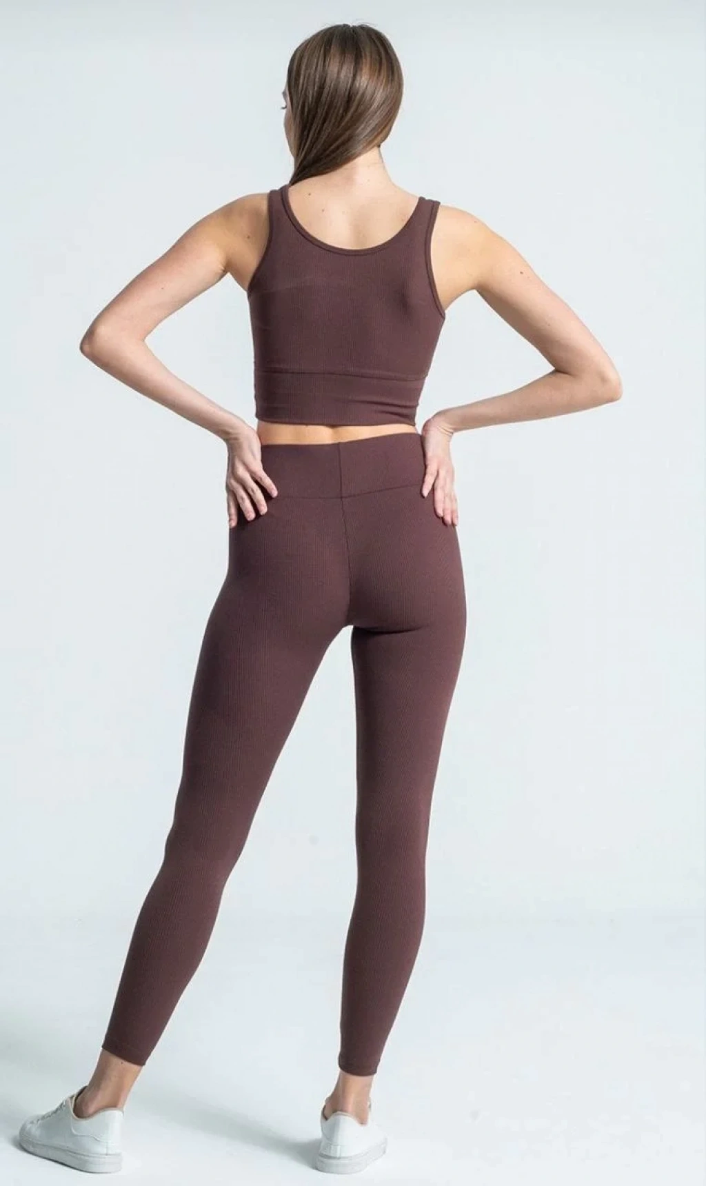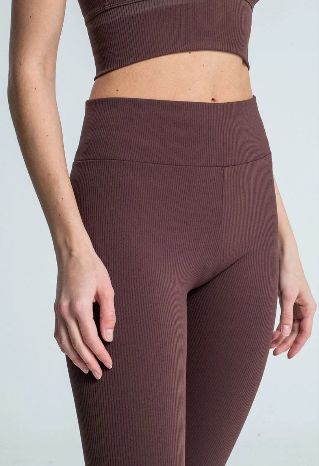 Kadın Yüksek Bel Fitilli Tayt - Kahverengi