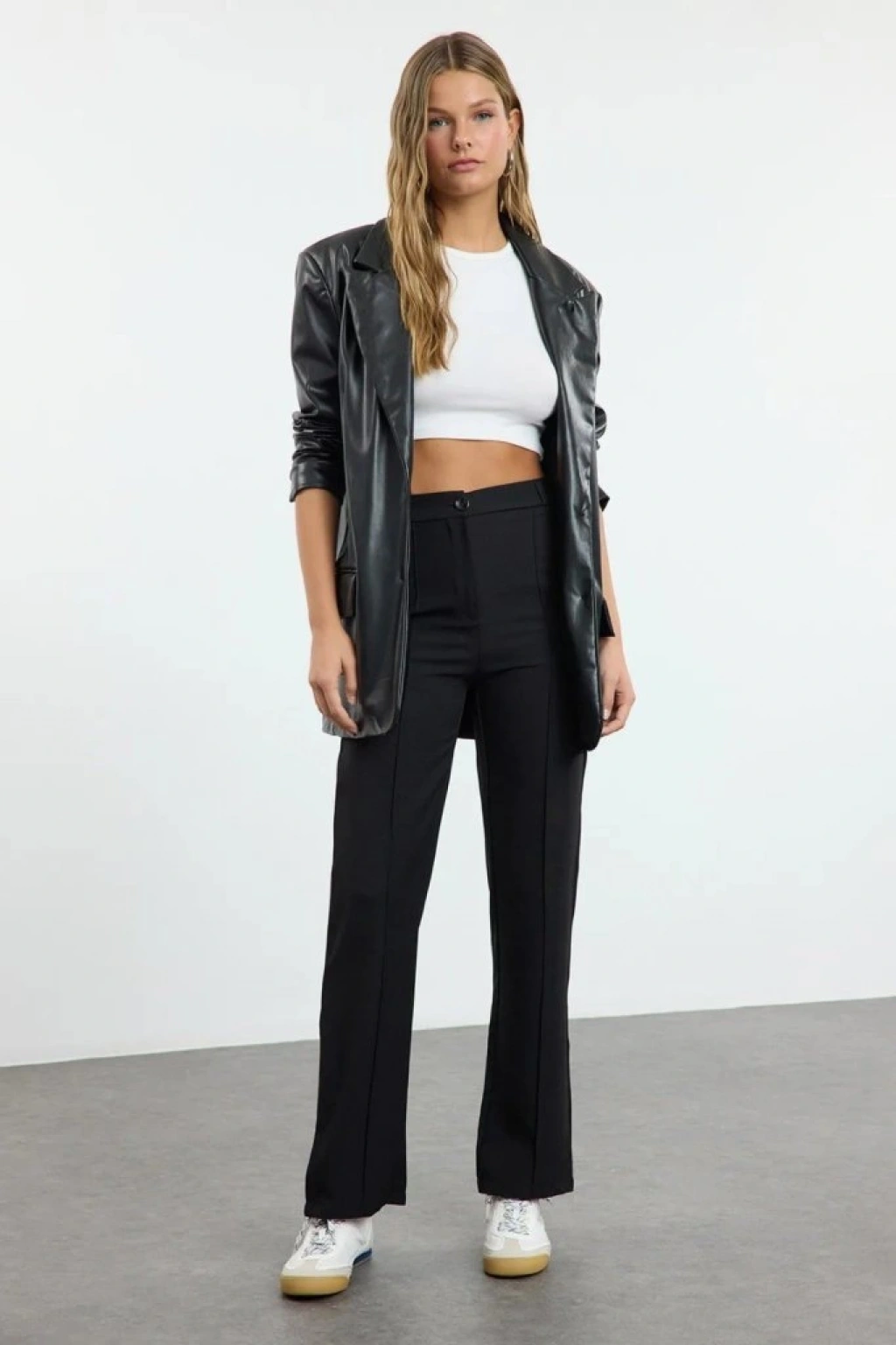 Kadın Yüksek Bel Nervurlu Ithal Krep Pantolon