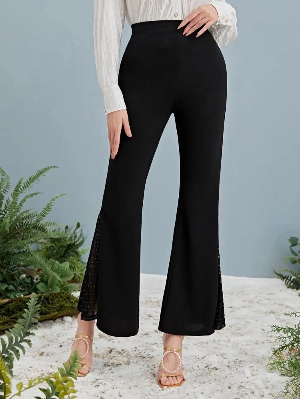 Kadın Yüksek Bel Yanları Tül Detaylı Dalgıç Tayt Pantolon
