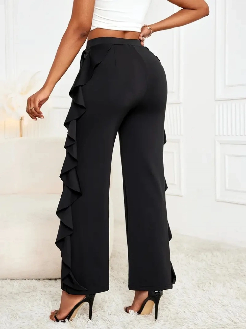 Kadın Yüksek Bel Yanları Volanlı Cepli Sandy Pantolon