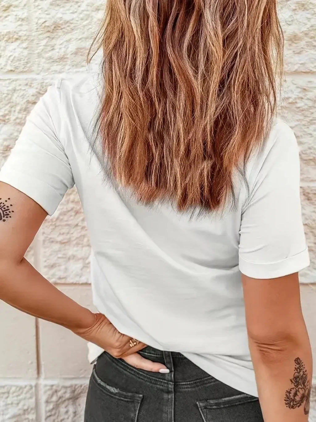 Kadınlar için Şık Leopar Kalp Baskılı Günlük Tişört - Büyük Beden, Makinede Yıkanabilir, Sevgililer Günü & Günlük Kıyafetler için Mükemmel- Beyaz