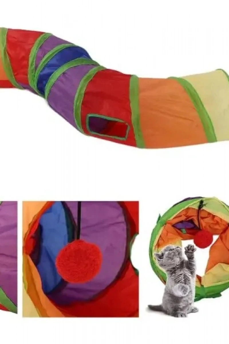 Kedilerin eğlenerek vakit geçirebileceği, naylon malzemeden yapılmış, açılması ve kapanması kolay, kedi oyun tüneli.