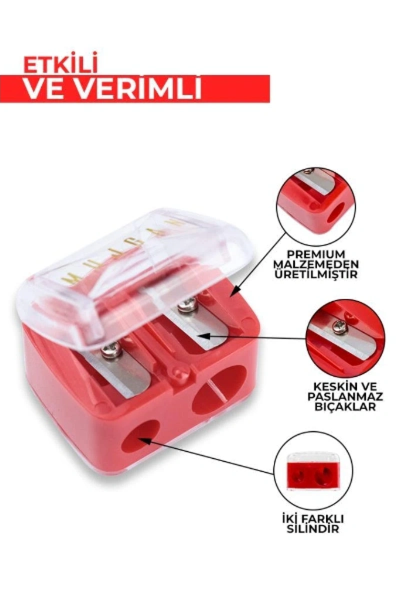 KOZMETİK KALEMTIRAŞ Ürün ÖzellikleriKozmetik kalemtıraş, makyaj kalemlerinizi pratik ve düzgün şekilde açmanız için tasarlanmış kullanışlı bir üründür. Çift gözlü yapısı sayesinde farklı kalınlıktaki dudak kalemi, göz kalemi ve kaş kalemi gibi ürünleri rahatlıkla açabilirsiniz. Paslanmaz çelik bıçaklı kalemtıraş yapısı keskin ve pürüzsüz açım sağlar, kalem uçlarının kırılmasını en aza indirir. Şeffaf kapak tasarımı kullanım sırasında oluşan kalıntıların etrafa dağılmasını önler ve hijyenik kullanım sunar. Çift silindirli kozmetik kalemtıraş özelliği sayesinde hem ince hem kalın makyaj kalemleri için uygundur. Kompakt ve hafif yapısıyla makyaj çantasında kolayca taşınabilir, günlük kullanım ve profesyonel makyaj uygulamaları için idealdir. Ürün, görselde yer alan renklerden karışık olarak gönderilmektedir.Ürün Teknik Özellikleri Özellik Açıklama Ürün Adı Kozmetik Kalemtıraş Çift Gözlü Malzeme Plastik gövde, paslanmaz çelik bıçak Renk Görseldeki renklerden karışık gönderim Kullanım Alanı Dudak kalemi, göz kalemi, kaş kalemi Paket İçeriği1 adet kozmetik kalemtıraş (renkler karışık gönderilir)