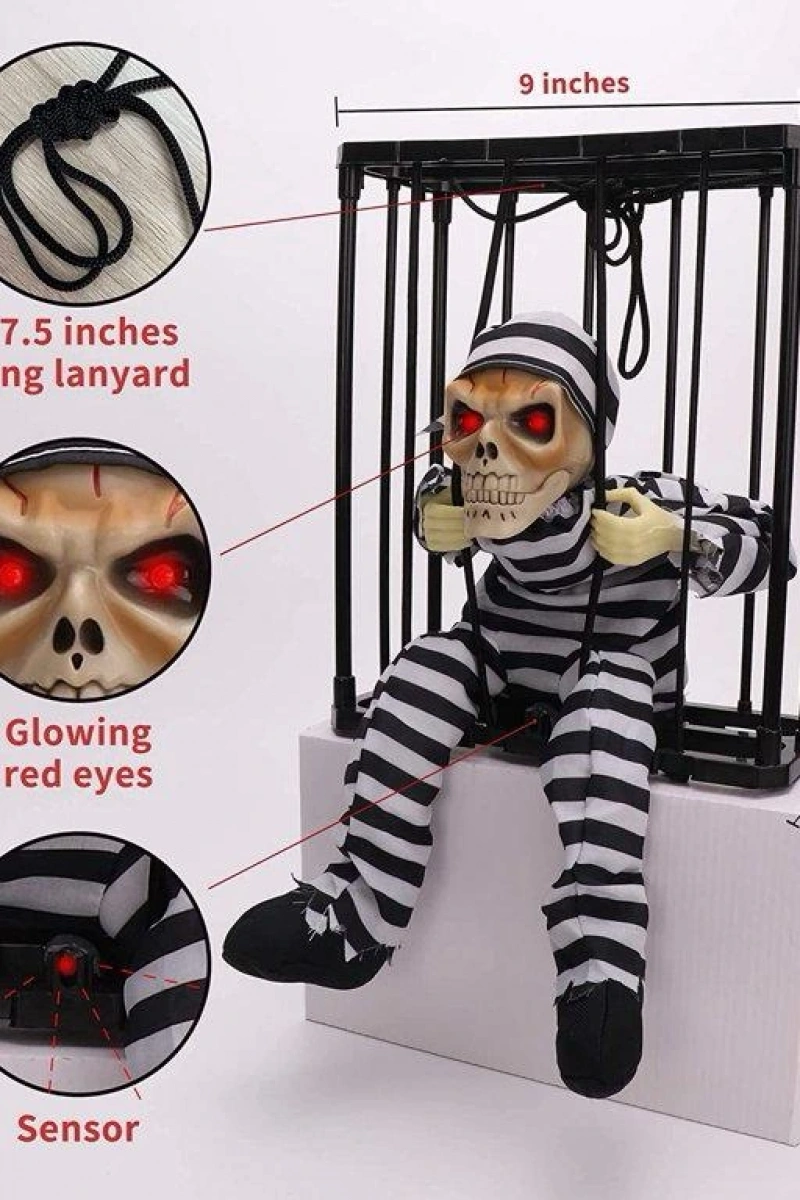 MAHKUM GÖRÜNÜMLÜ KURU KAFA İSKELETÜrün Özellikleri:Evinizi veya etkinlik alanınızı eğlenceli ve sıra dışı bir atmosferle donatmak için tasarlanmış olan bu dekoratif ürün, mahkum ve kuru kafa temalarını birleştirir. Hareketli, sesli sensörlü ve gerçekçi detaylara sahip bu iskelet dekorasyonu, özellikle korku temalı etkinliklerde dikkat çekici bir öğe olabilir.Ürün Ölçüleri:Mahkum Görünümlü İskelet 22x27 dirPaket İçeriği:1 Adet Hareketli Sesli Sensörlü Mahkum Görünümlü Kuru Kafa İskelet Dekorasyon 22x27 cm