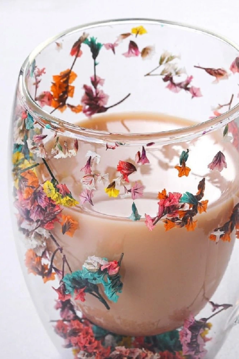 Orjinal Kurutulmuş Çiçekli Kupa Bardak