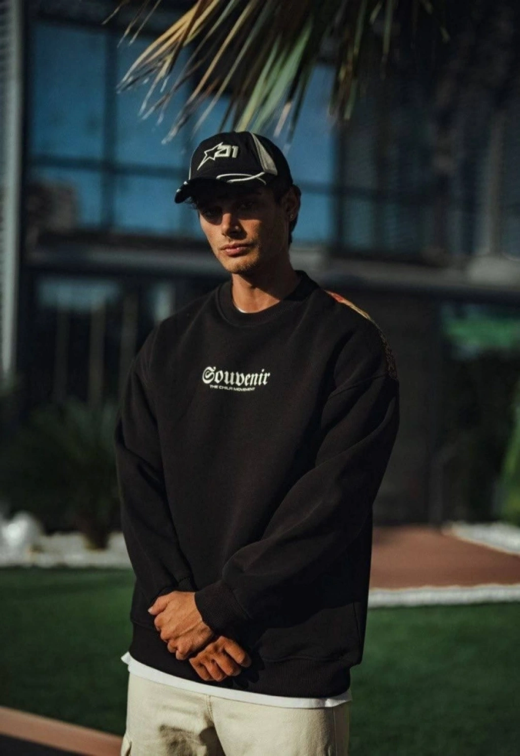 Oversize Bisiklet Yaka Baskılı SweatShirt - Siyah