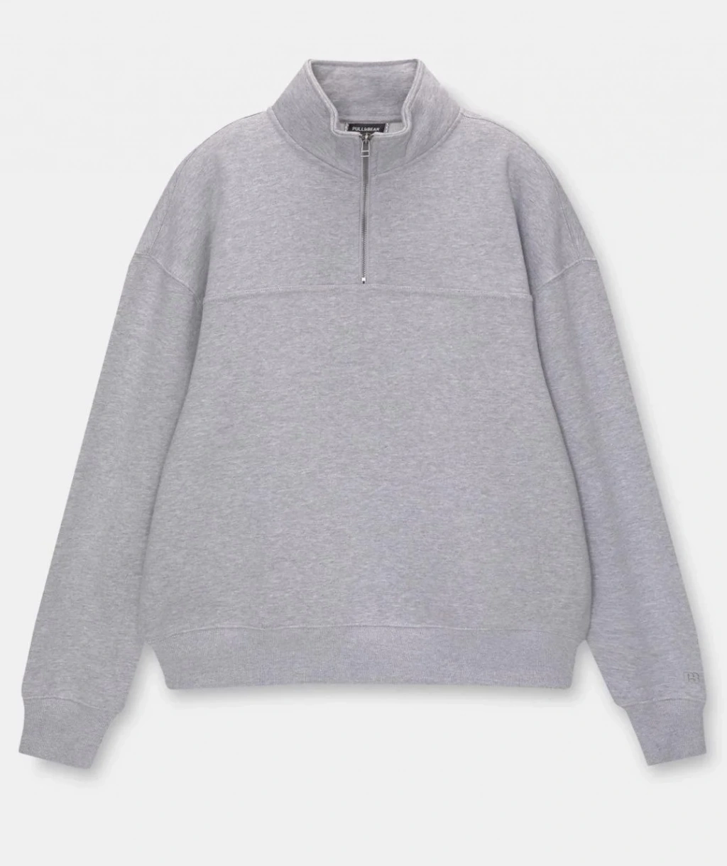 Oversize Yarım Farmuarlı Yakalı Basic SweatShirt - Gri