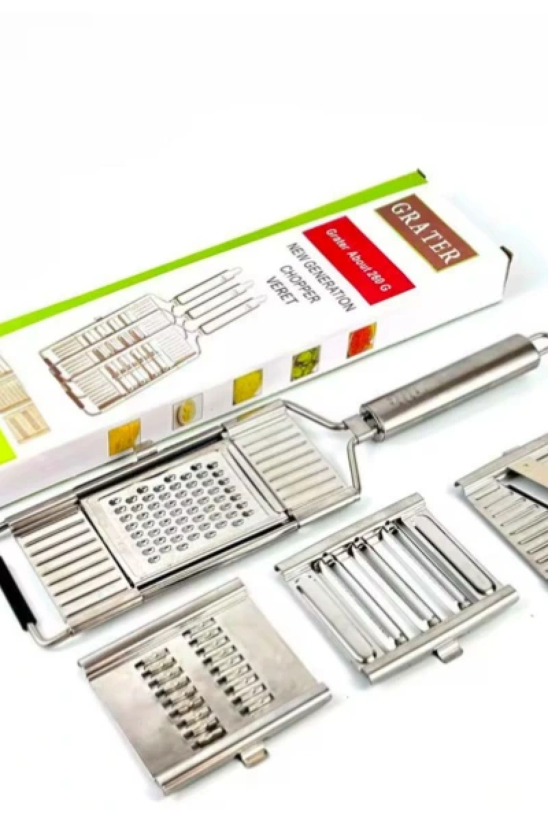 PASLANMAZ ÇELİK 4'LÜ SET EL RENDESİÜrün ÖzellikleriMutfakta zamandan tasarruf sağlayan paslanmaz çelik 4’lü set el rendesi, hem dayanıklı yapısı hem de çok yönlü kullanımı ile dikkat çeker. Yüksek kaliteli paslanmaz çelikten üretilmiş olması sayesinde uzun ömürlü kullanım sunar ve paslanmaya karşı dirençlidir. Ergonomik tutma sapı elden kaymayı önleyerek güvenli bir kullanım sağlar. Set içerisinde yer alan farklı başlıklar sayesinde sebze, meyve, peynir, havuç, salatalık gibi birçok ürünü kolayca dilimleyebilir, rendeleyebilir veya jülyen kesebilirsiniz. Pratik şekilde değiştirilebilen başlıklar, mutfakta ihtiyaca göre hızlı çözümler sunar. Temizliği son derece kolay olan ürün, elde veya bulaşık makinesinde yıkanabilir. Hem profesyonel mutfaklar hem de ev kullanımı için idealdir.Paket İçeriği1 adet Paslanmaz Çelik 4'lü Set El Rendesi